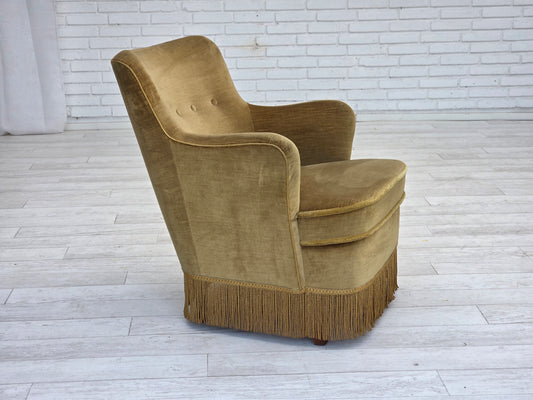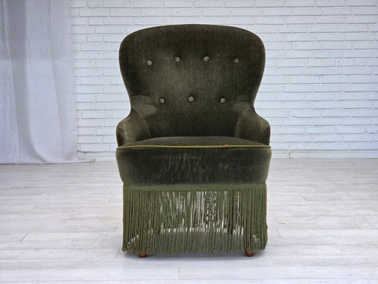 1970s, Danish relax armchair, green furniture velour, original condition.