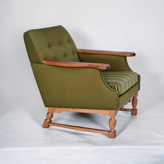 1970s, Danish lounge chair, wool, oak, original very good condition.