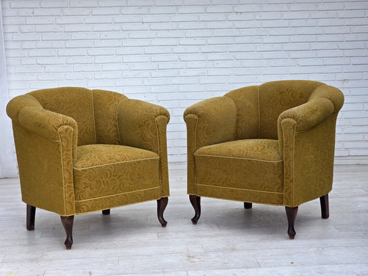 1950s, Scandinavian armchair, green furniture velour, ash wood.