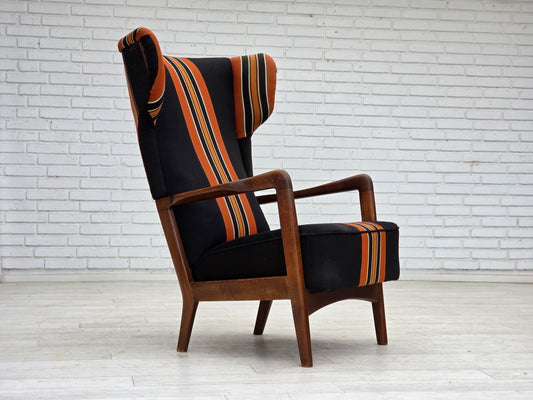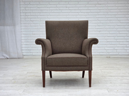 1960s, Danish highback armchair by Fritz Hansen, furniture wool, beech wood.