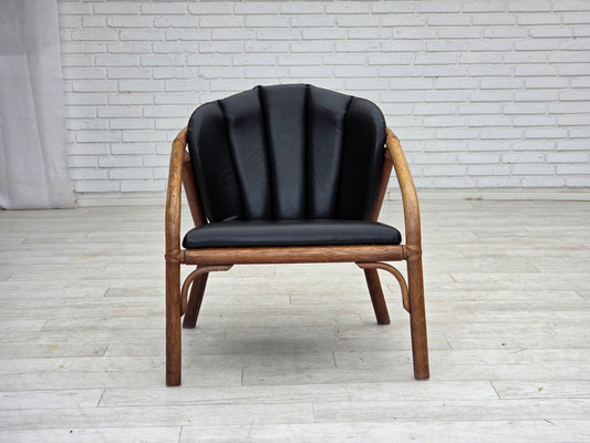 1970s, Danish armchair, rattan, black artificial leather.