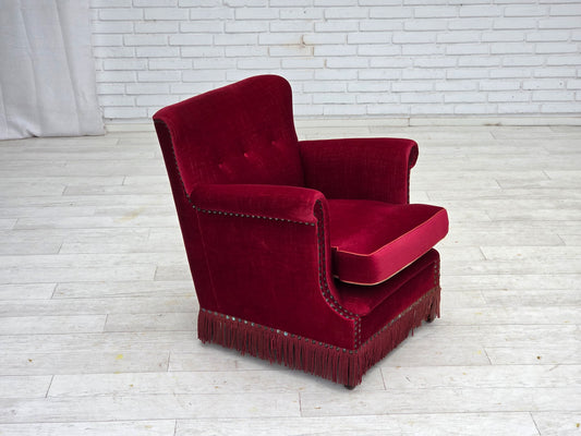 1970s, Danish armchair, red furniture velour, ash wood.
