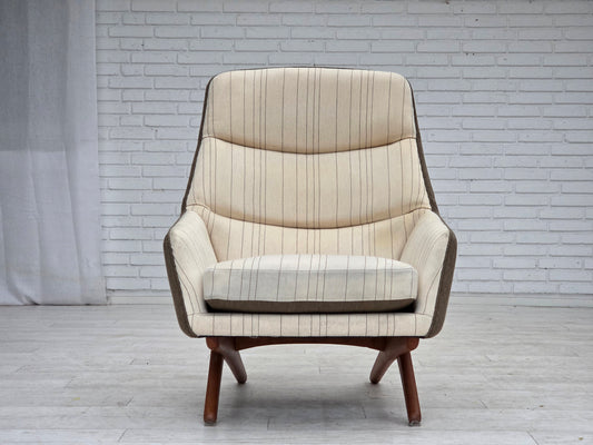 1950s, Danish relax chair, furniture velour, carved ash wood.