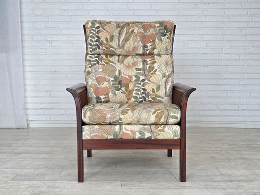 1955-60s, Danish design, armchair in floral multicolor fabric, original condition.