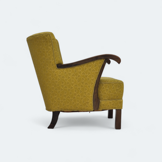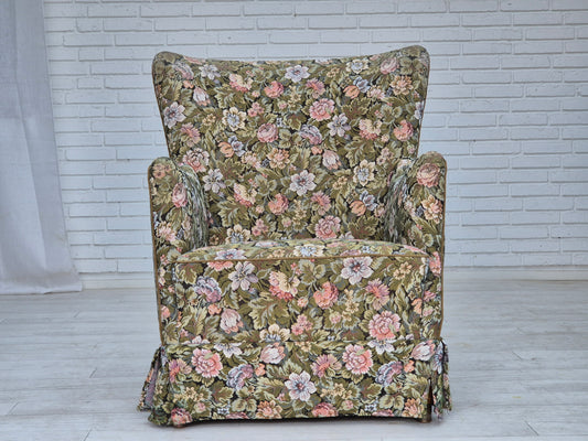 1970s, Danish armchair, reupholstered, flowers furniture fabric.