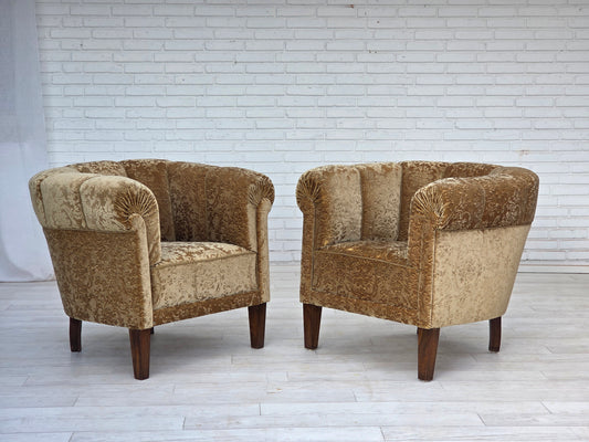 1960s, Danish armchair, furniture velour fabric, ash wood.