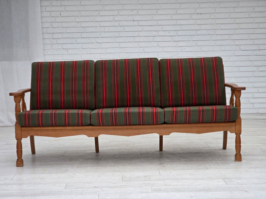 1970s, Danish 3-seater sofa, green furniture wool, oak wood.