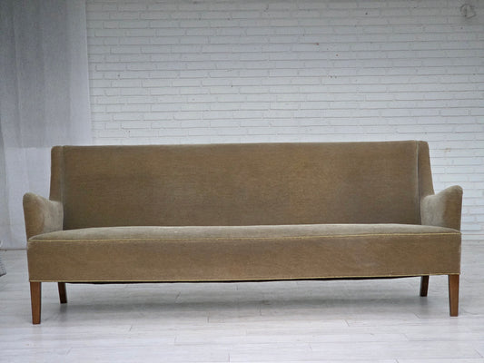 1960s, Danish 4-seater sofa, original light green furniture velour.