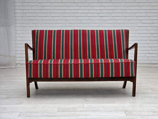 1920-30s, Danish 2-seater sofa, furniture velour, ash wood, reupholstered.