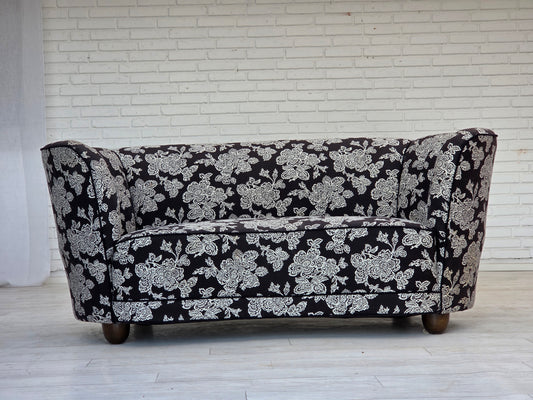 1960s, Danish 2-seater "Banan" sofa, black-white fabric, beech wood.