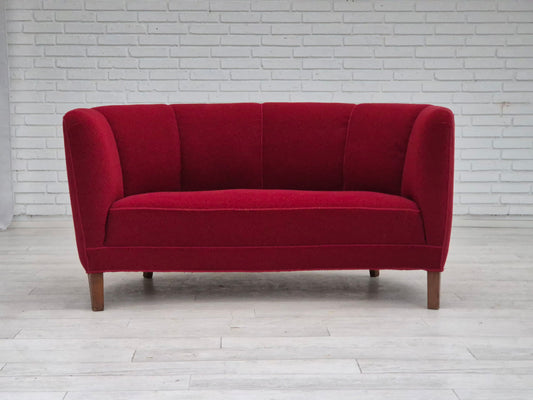 1960s, Danish 2-seater curved sofa, original red furniture fabric.