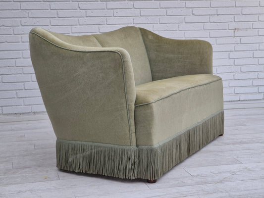 1960s, Danish 2-seater sofa, green furniture velour, original condition.