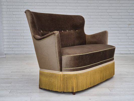 1960s, Danish 2 seater sofa, furniture velour, original condition.
