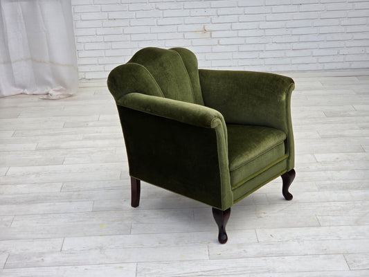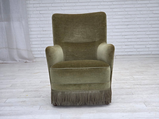 1950s, Danish armchair, green furniture velour, ash wood legs.