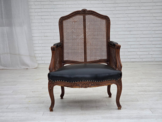 1930s, Danish armchair, furniture leather, ash wood, furniture mesh, reupholstered.