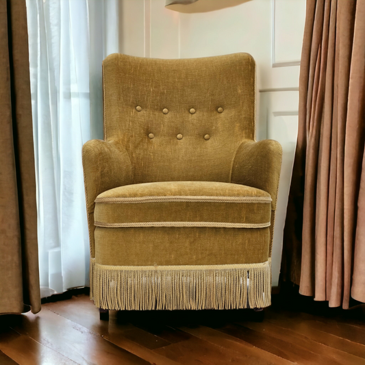 1950s, Danish vintage relax chair in "flowers" fabric, very good condition.