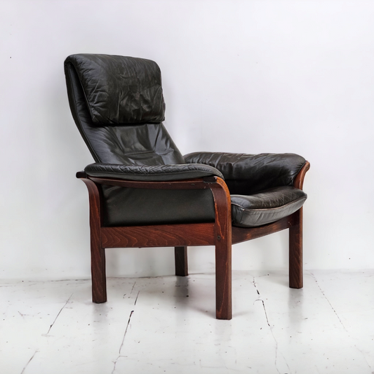 1970s, Vintage Danish leather armchair by H.W.Klein, original condition.