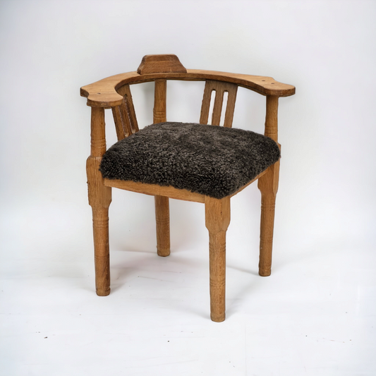 1950s, Danish design, reupholstered armchair, New Zealand sheepskin, oak wood.