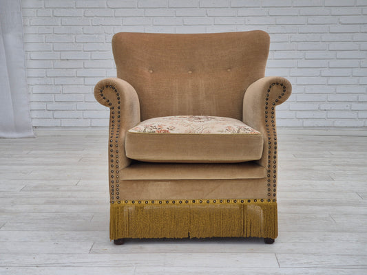 1960s, Danish lounge chair, green furniture velour, original condition.