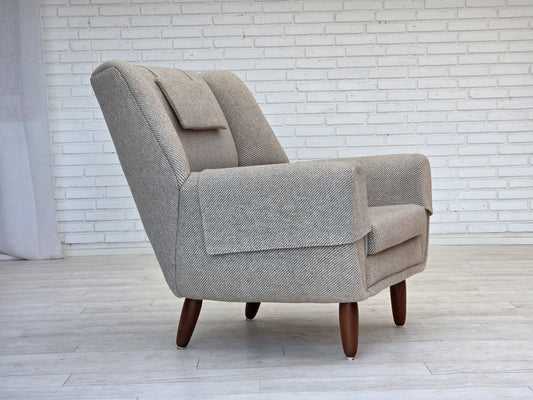 1970s, Danish loungechair, furniture wool, teak wood legs.