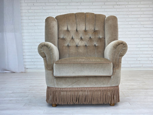 1960s, Danish armchair in green/brown furniture velour, original condition.