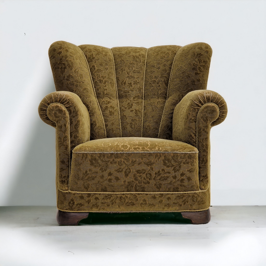 1950s, Danish vintage relax chair in green fabric, original condition.