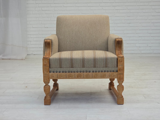 1970s, Danish armchair, original beige furniture wool, solid oak wood.