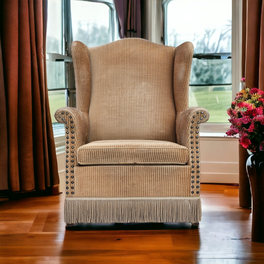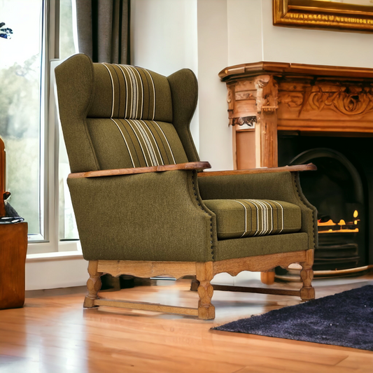 1970s, Danish wingback chair, original upholstery, green furniture wool.