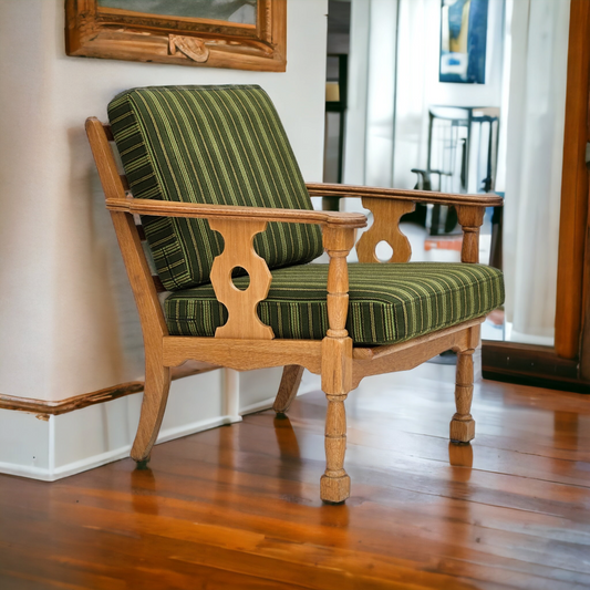 1970s, Danish design, oak wood armchair in furniture wool, oak wood.