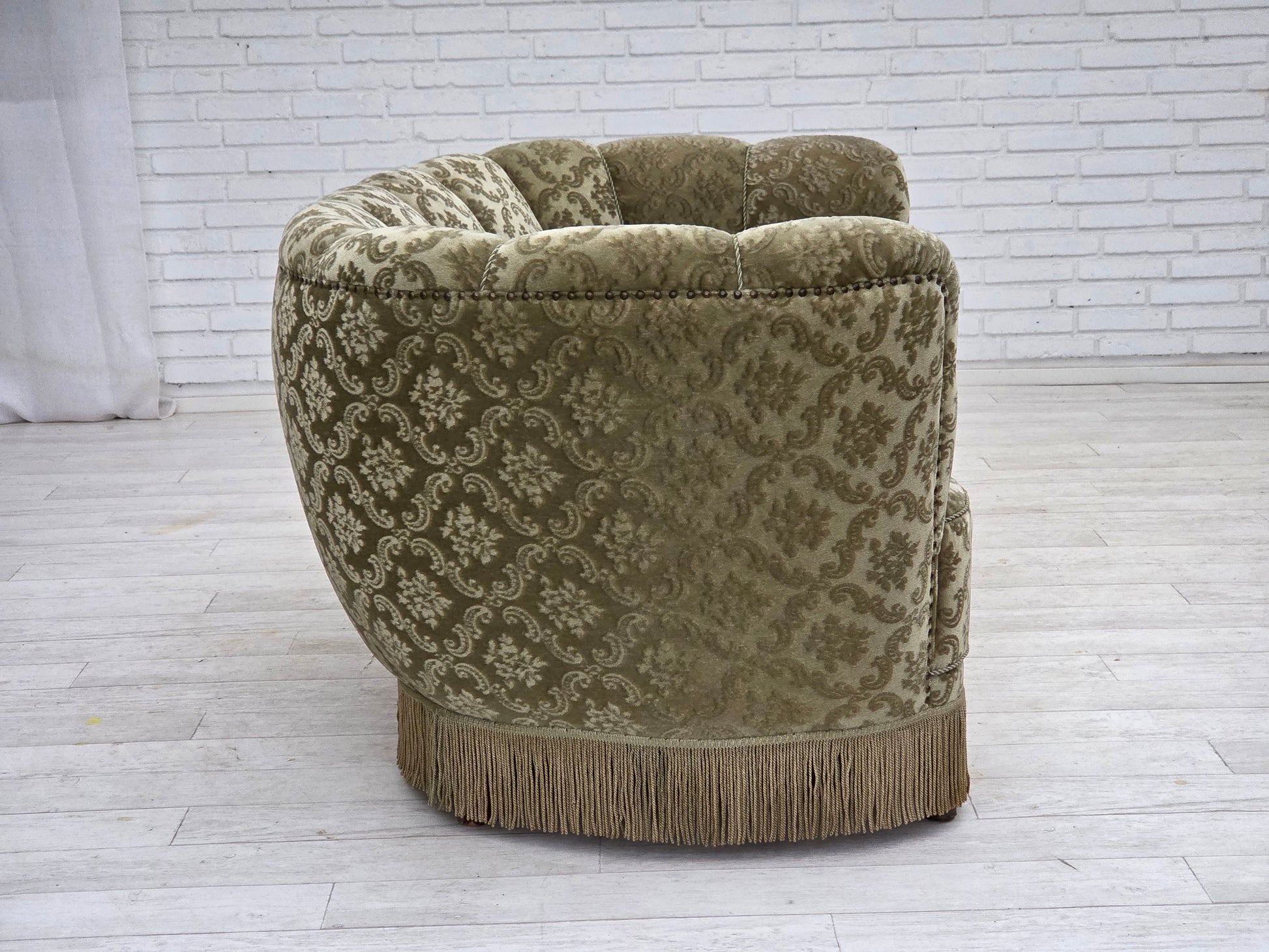 1960s, Danish 2-seater curved sofa, light green furniture velour.