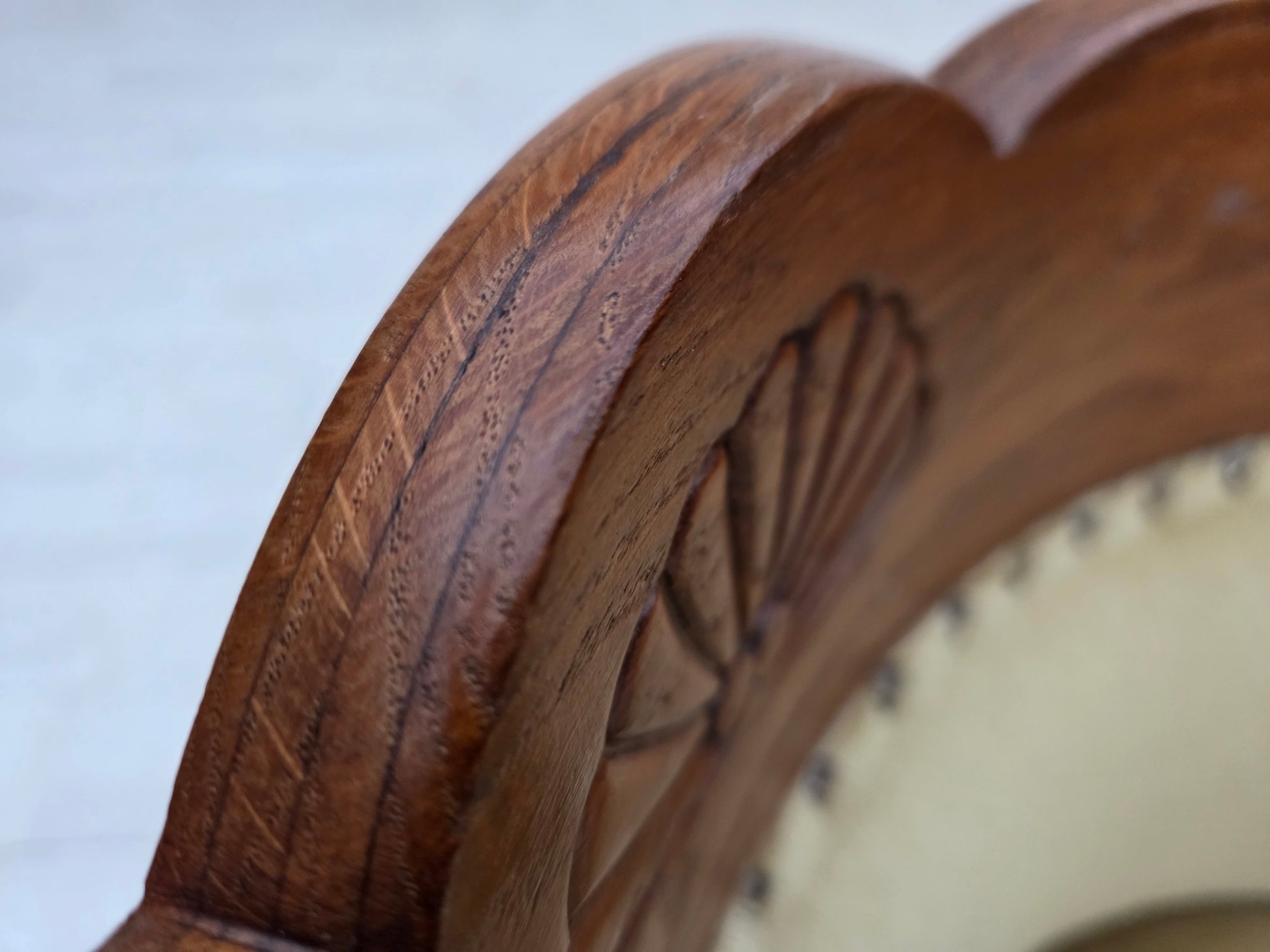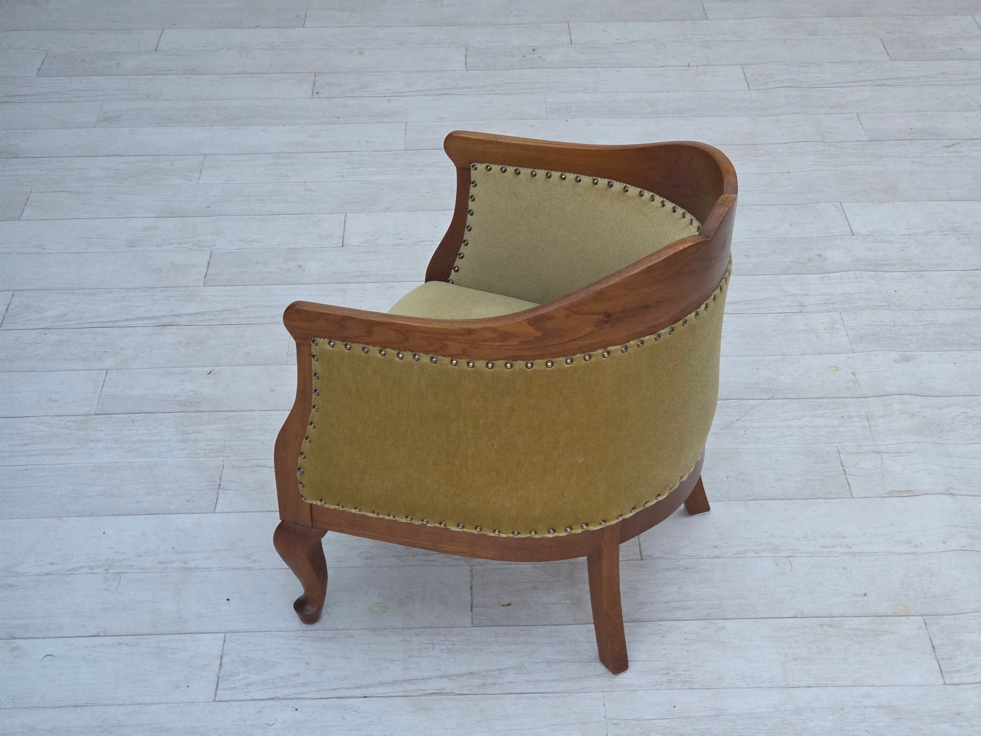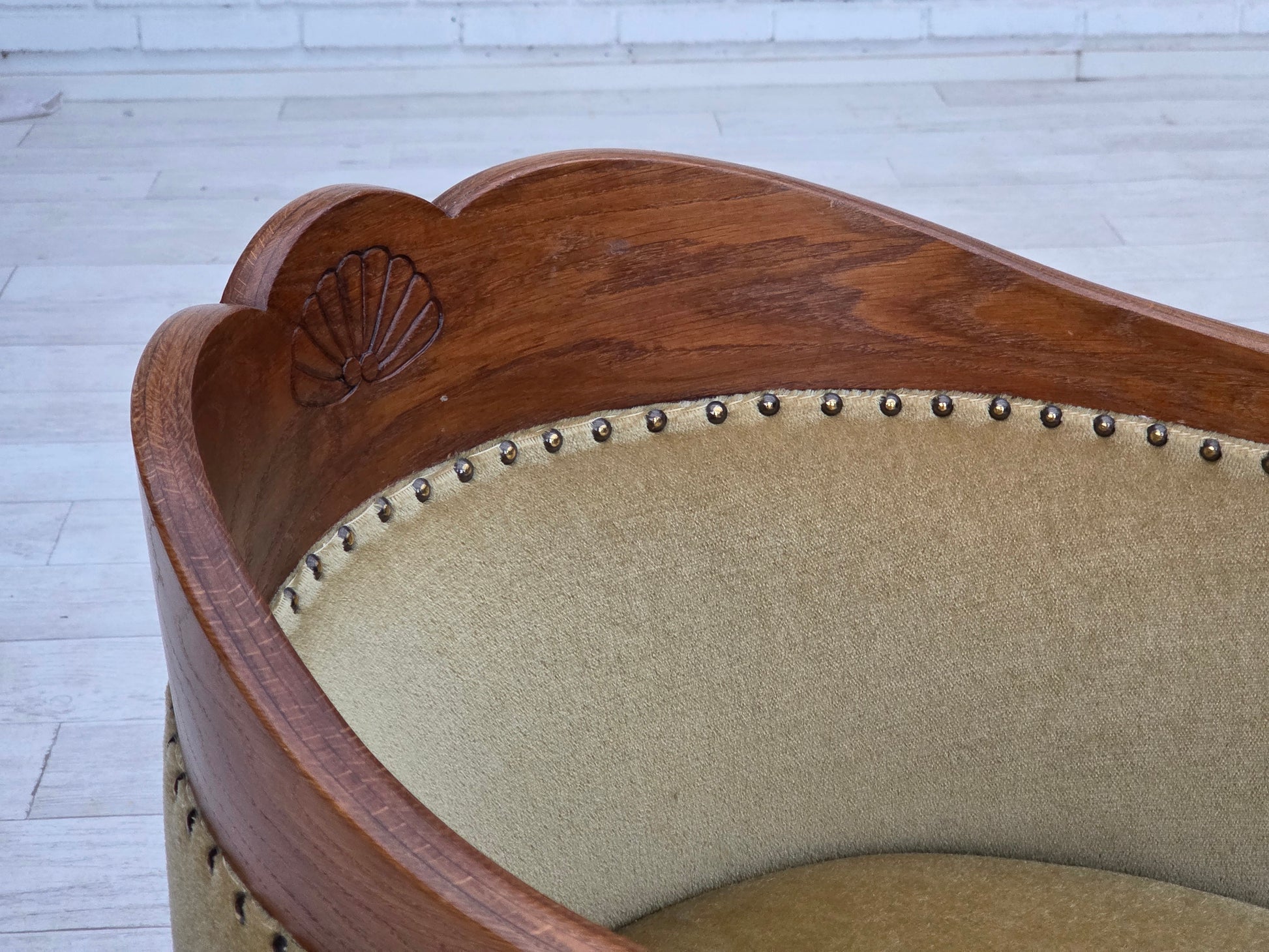 DESCRIPTION: 1960s, Danish side/children's armchair. Light green furniture velour, oak wood, brass springs in the seat. Original very good condition: no smells, no stains and stable construction. Manufactured by Danish furniture maker in about 1960-65s. Original Scandinavian craftsmanship vintage design directly from Denmark. The chair was checked by craftsman.
