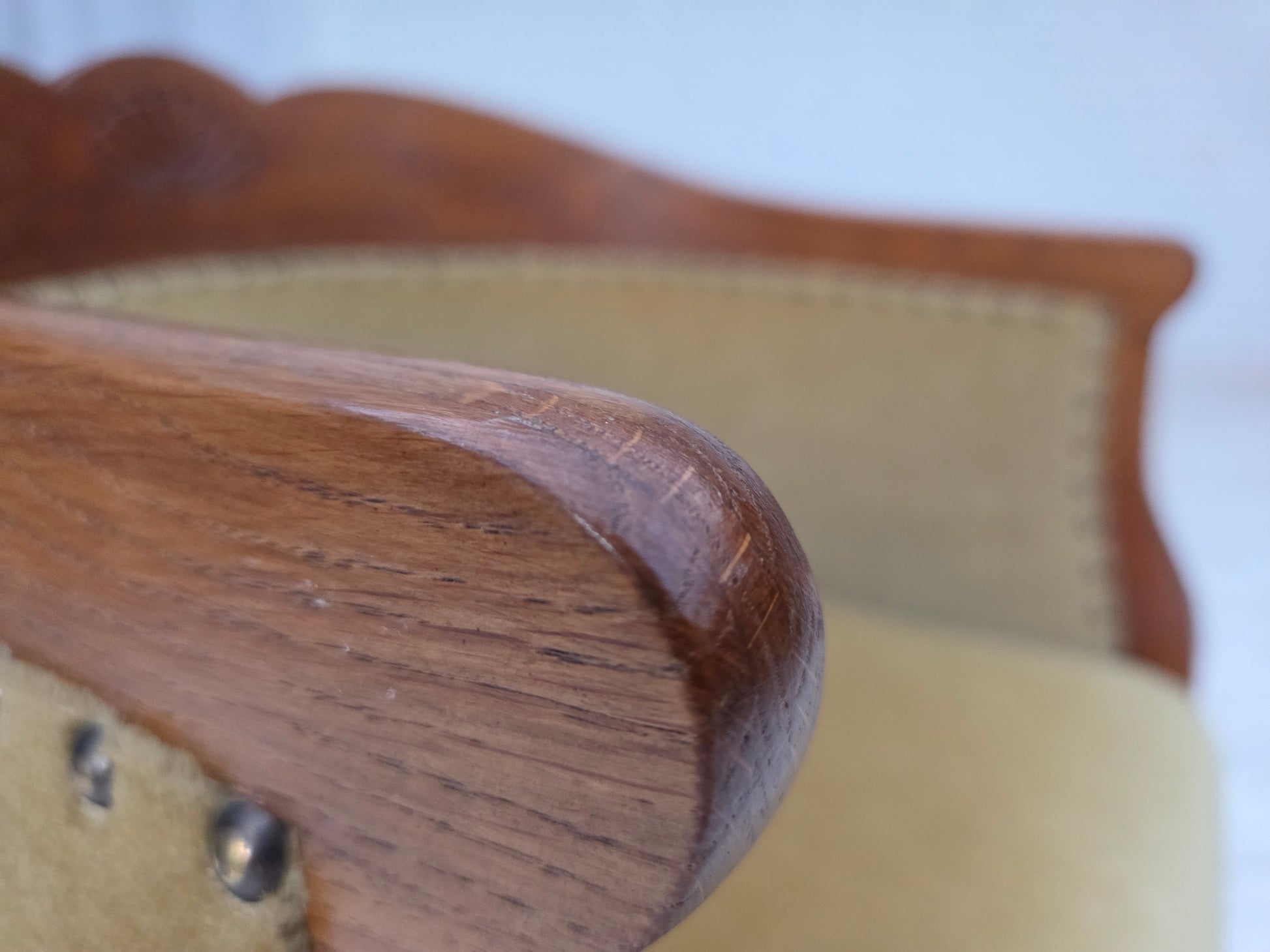 1960s, Danish side/children's armchair, light green furniture velour, oak wood.
