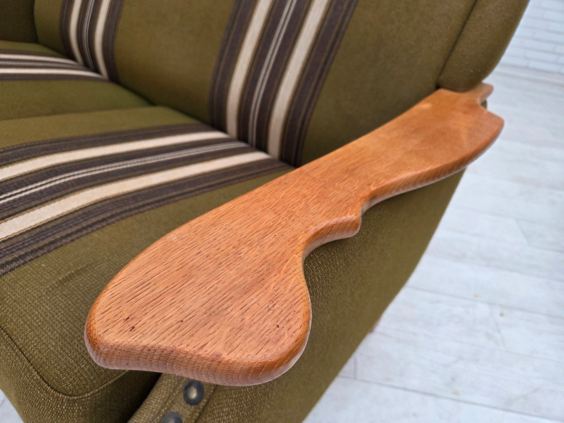 DESCRIPTION: 1970s, Danish 2-seater sofa. Original green furniture wool, oak wood, springs in the seat cushions. Original very good condition: no smells, no stains and stable construction. Manufactured by Danish furniture maker in about 1970-75s. Original Scandinavian vintage design directly from Denmark. The sofa was checked by craftsman.