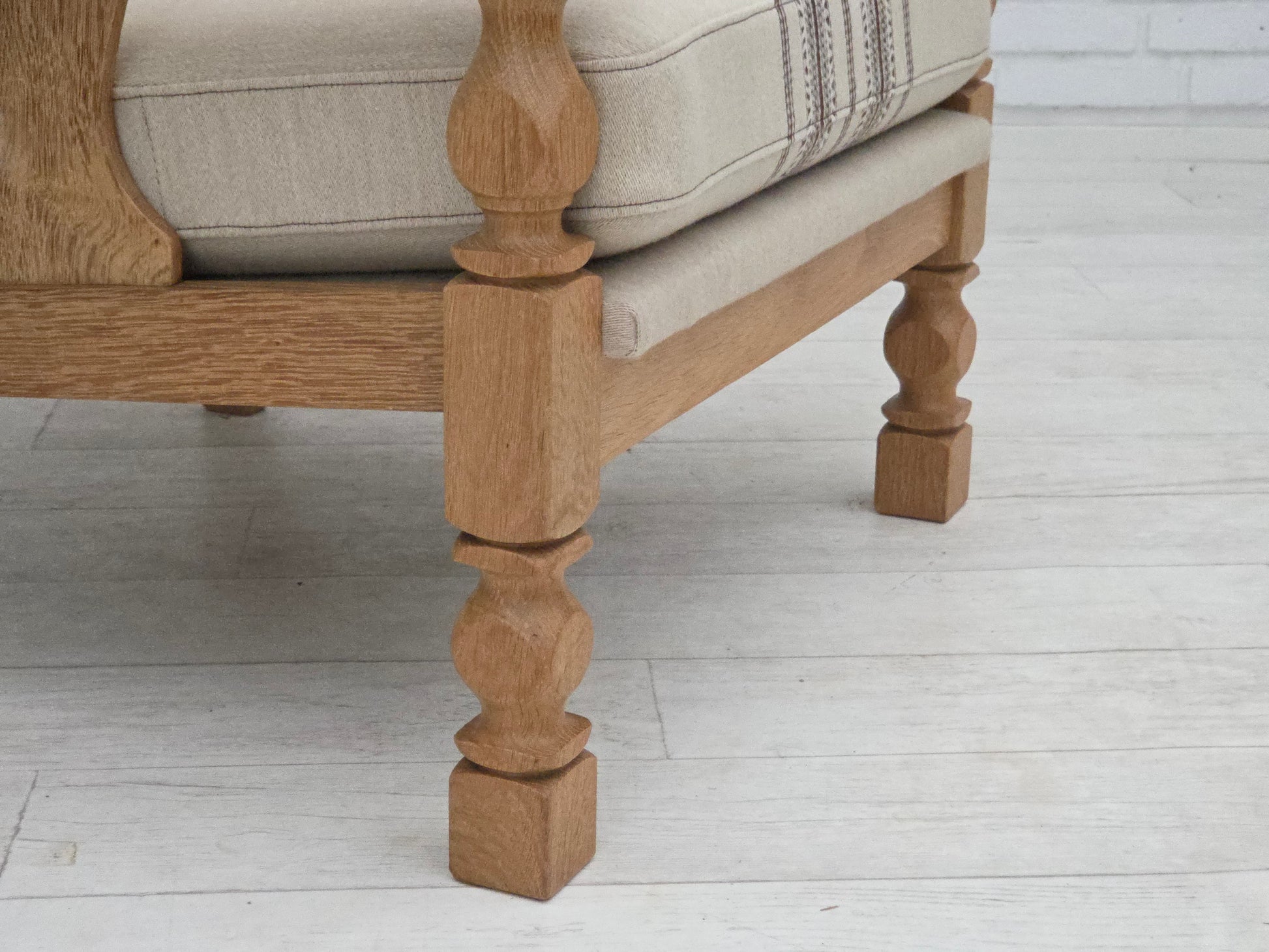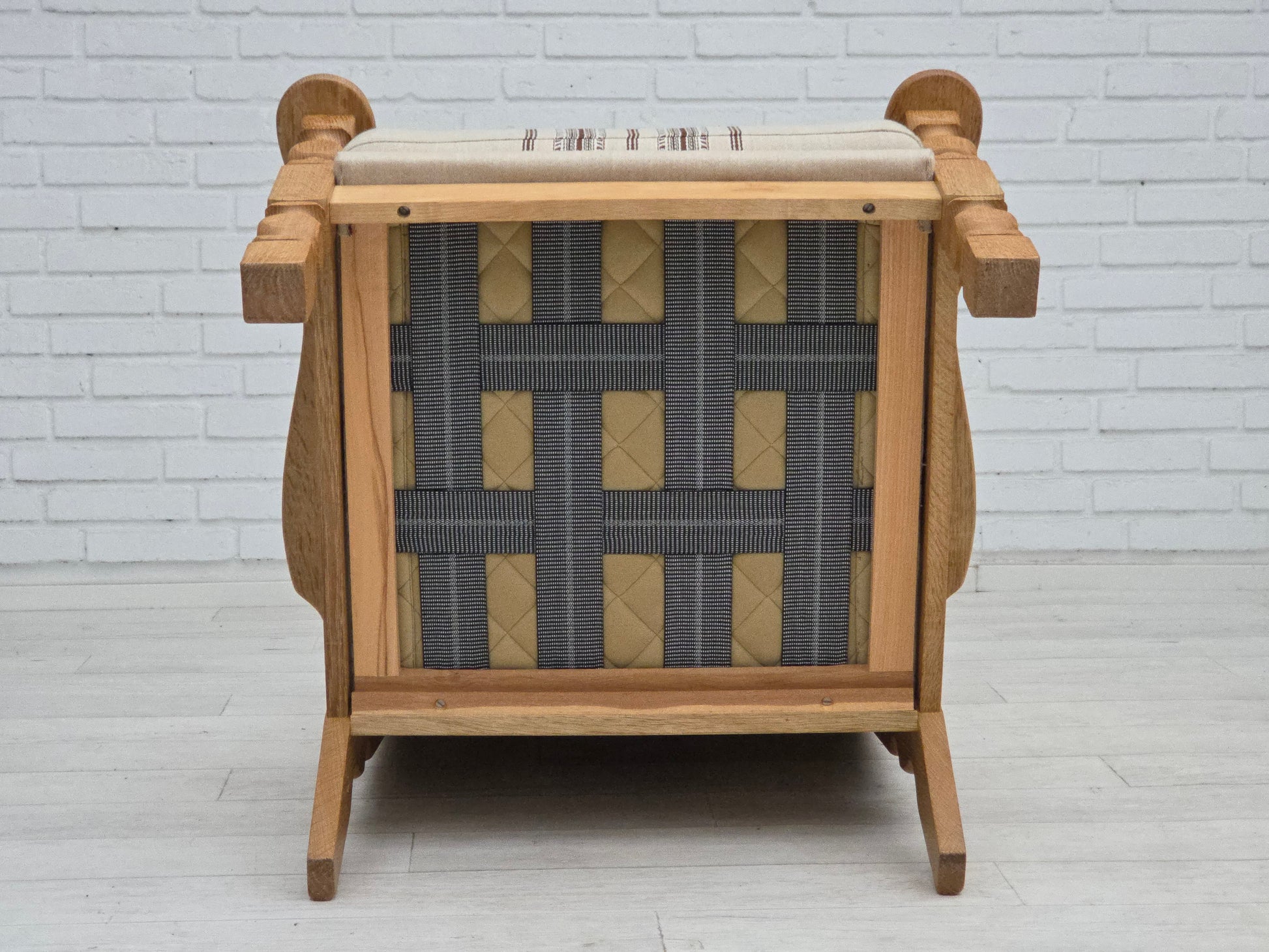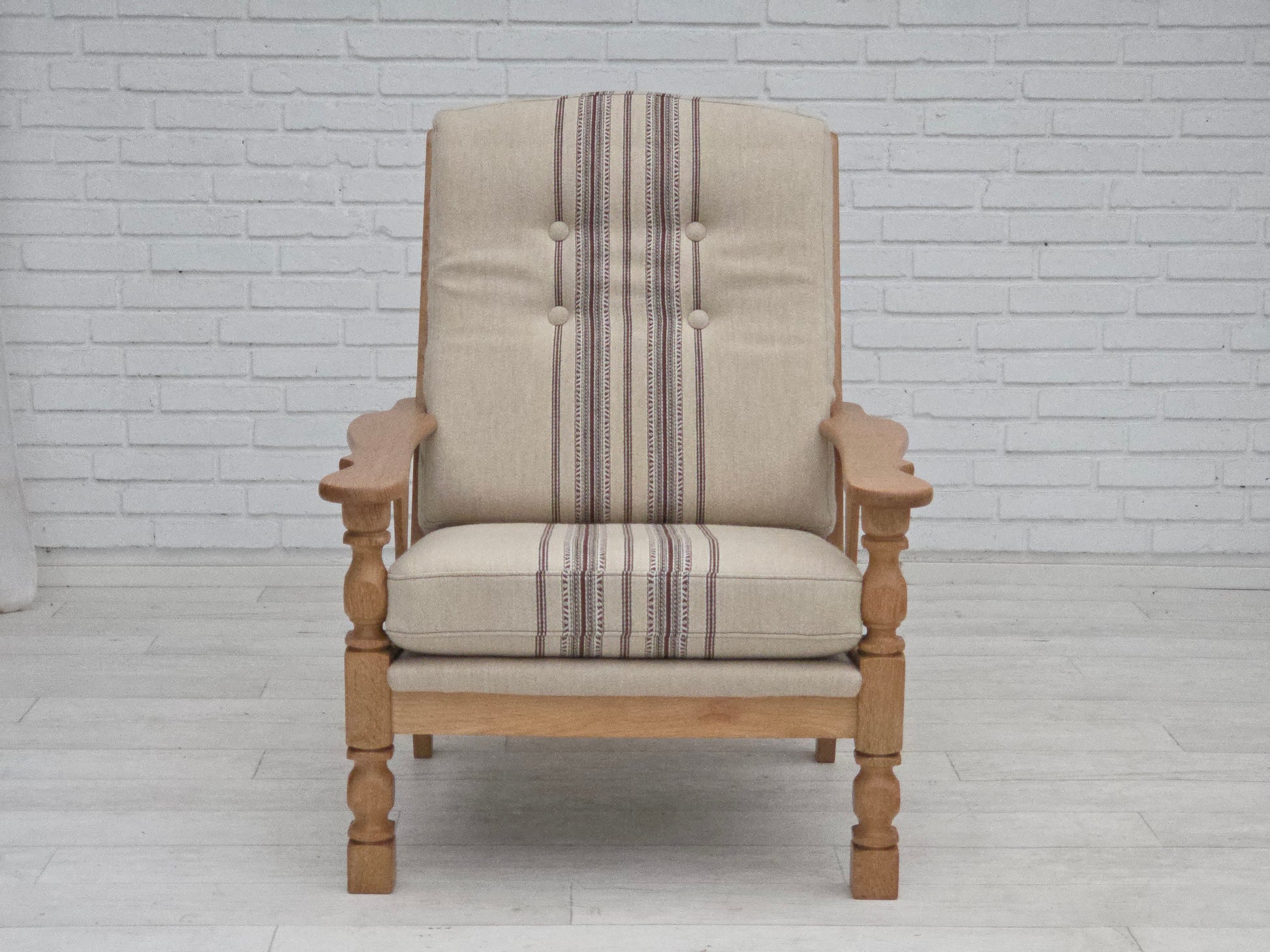 DESCRIPTION: 1970s, Danish armchair. Original beige furniture wool, solid oak wood. Original very good condition: no smells, no stains and stable construction. Springs in the seat cushion. Manufactured by Danish furniture maker in about 1970-75s. Original Scandinavian vintage design directly from Denmark. The chair was checked by craftsman.