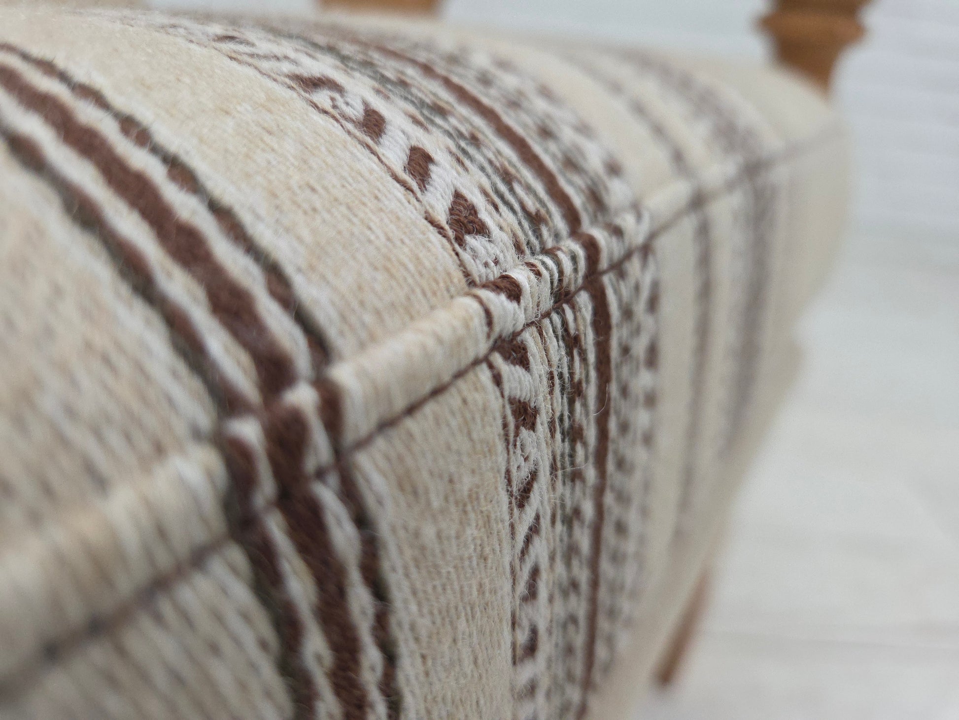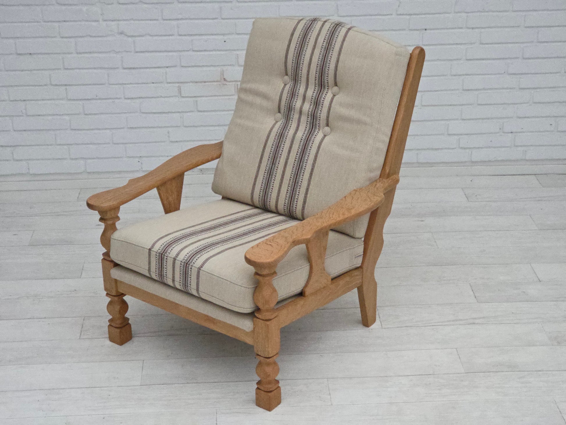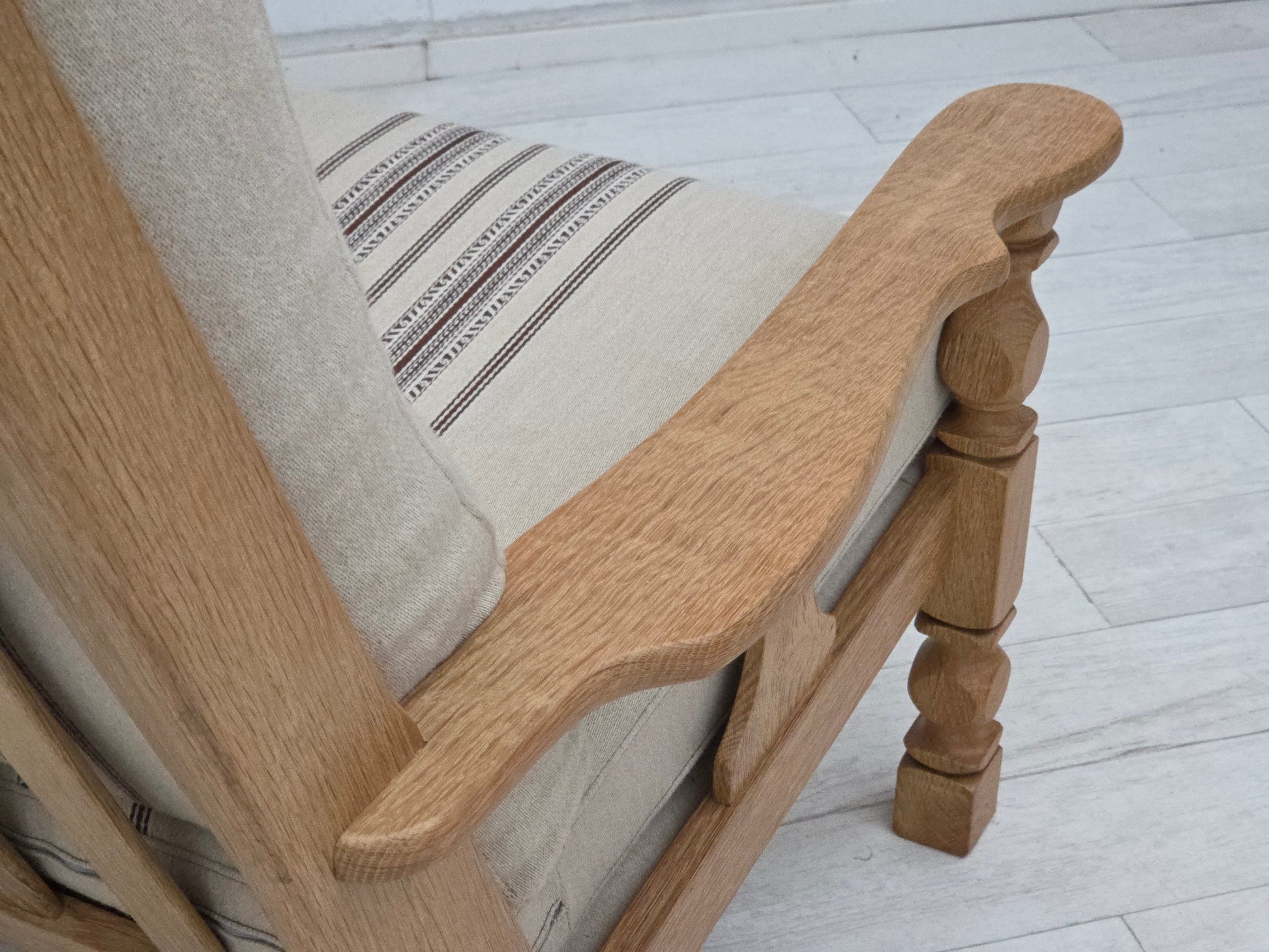 DESCRIPTION: 1970s, Danish armchair. Original beige furniture wool, solid oak wood. Original very good condition: no smells, no stains and stable construction. Springs in the seat cushion. Manufactured by Danish furniture maker in about 1970-75s. Original Scandinavian vintage design directly from Denmark. The chair was checked by craftsman.
