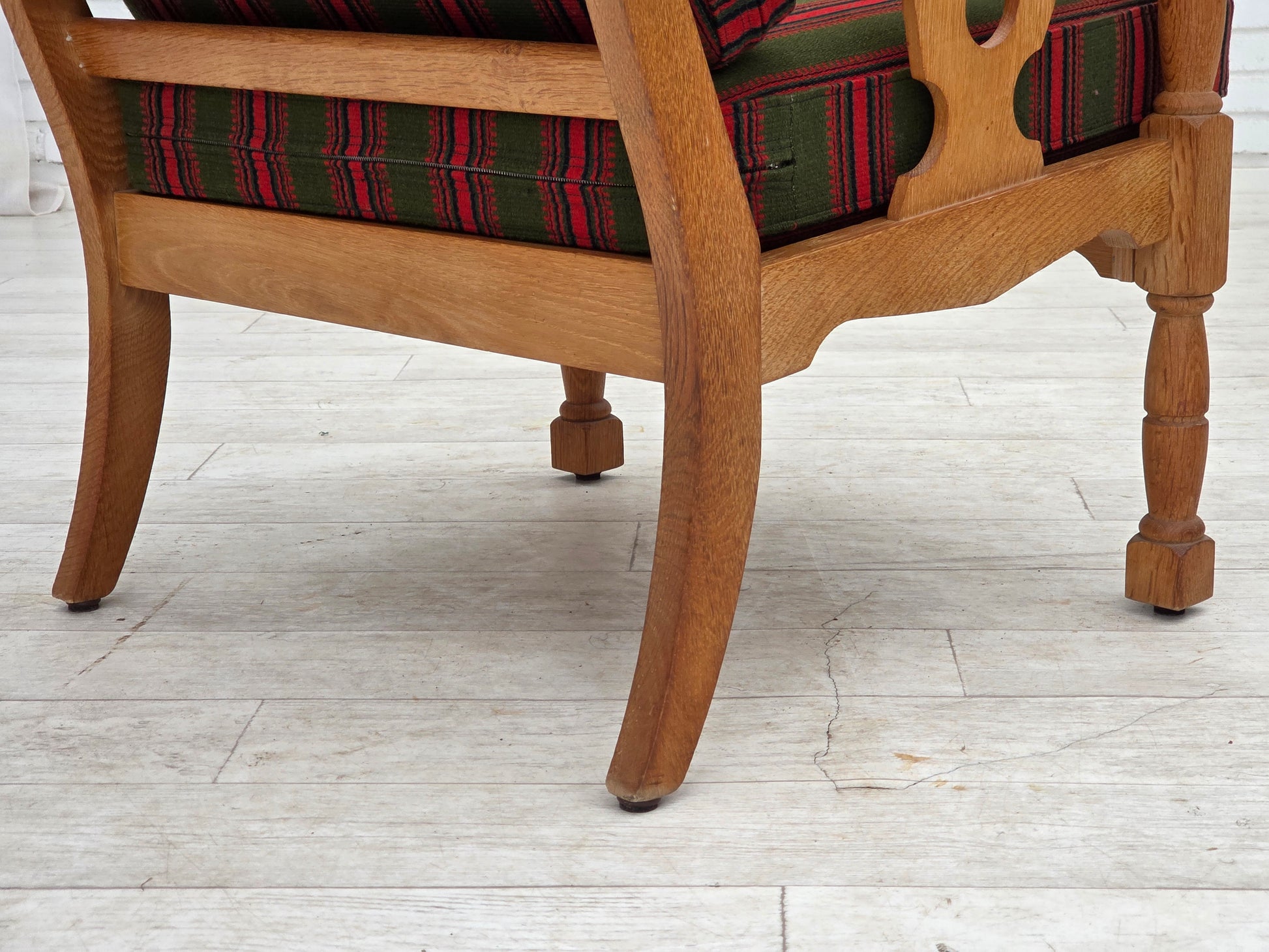 1970s, Danish armchair, green furniture wool, solid oak wood.