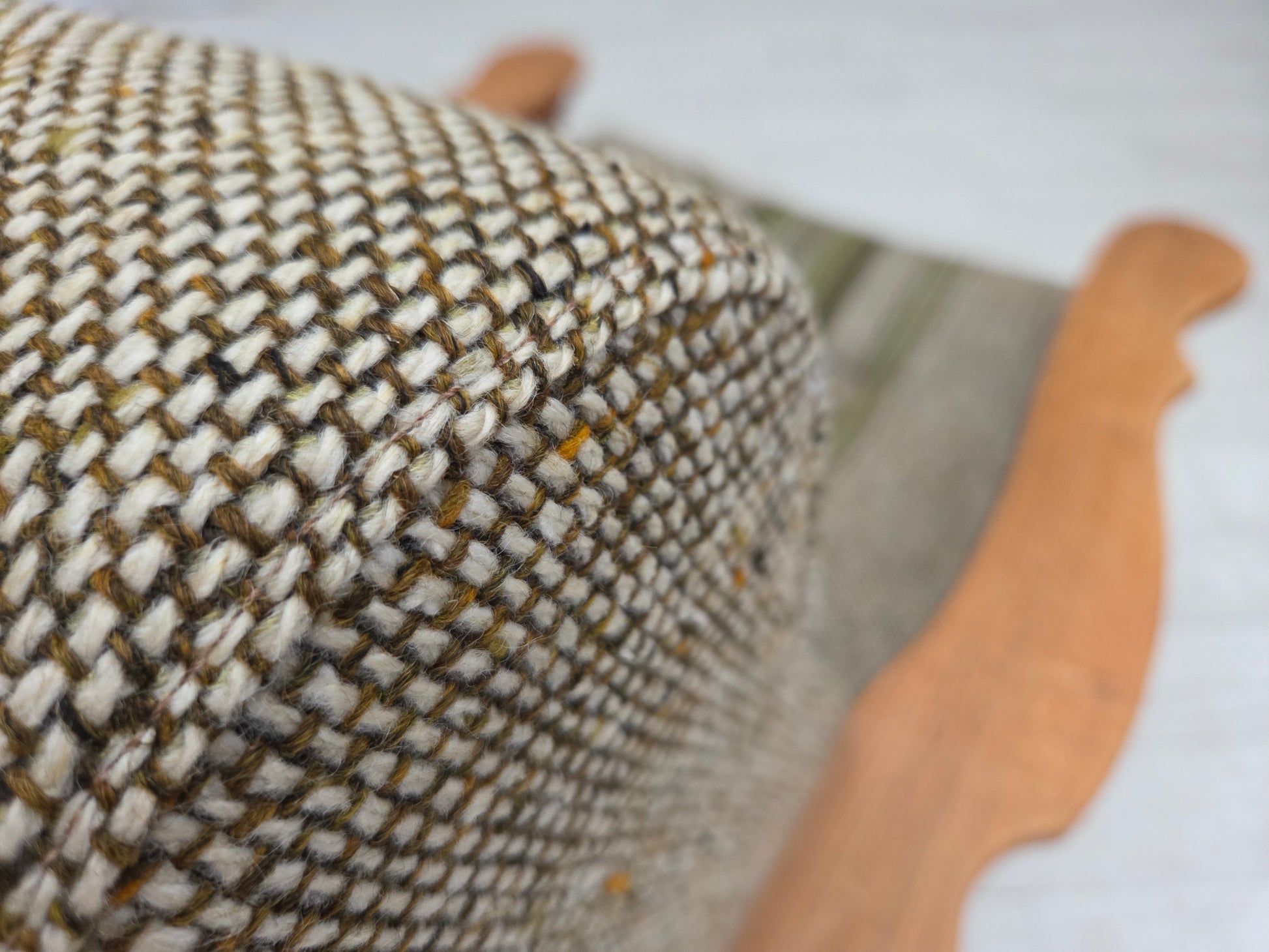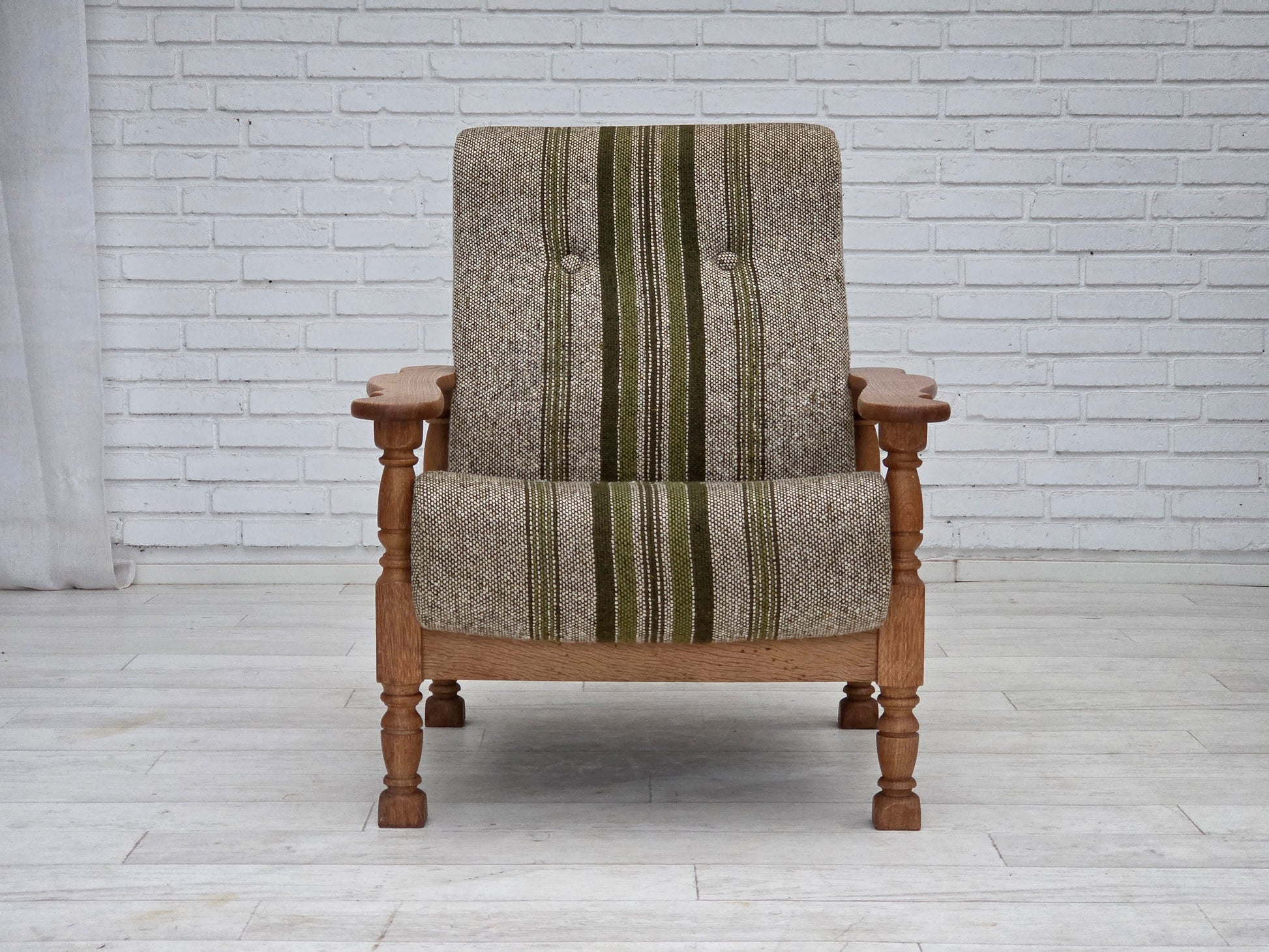 1970s, Danish armchair, original furniture wool fabric, solid oak wood.