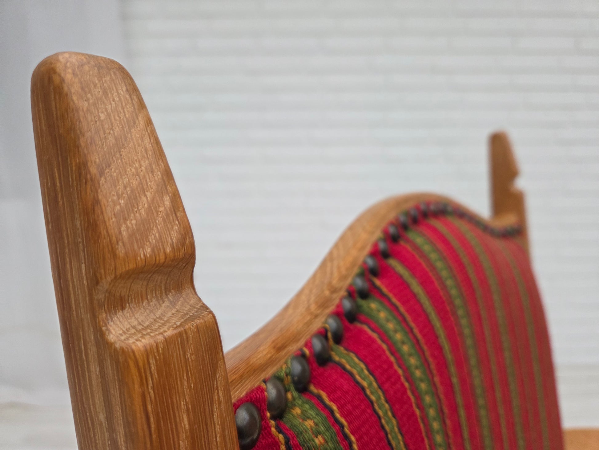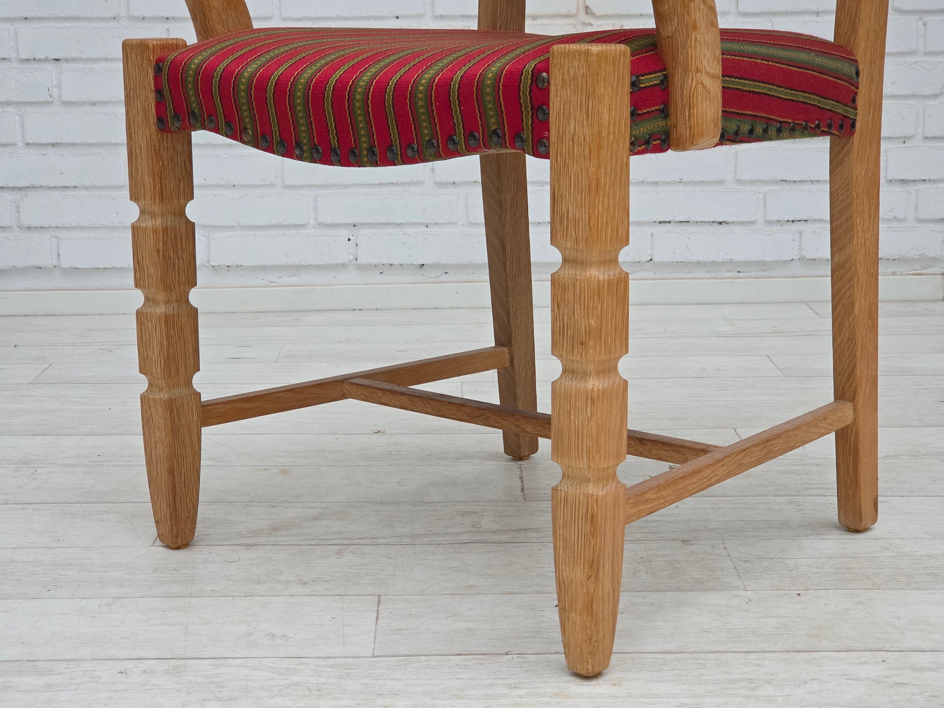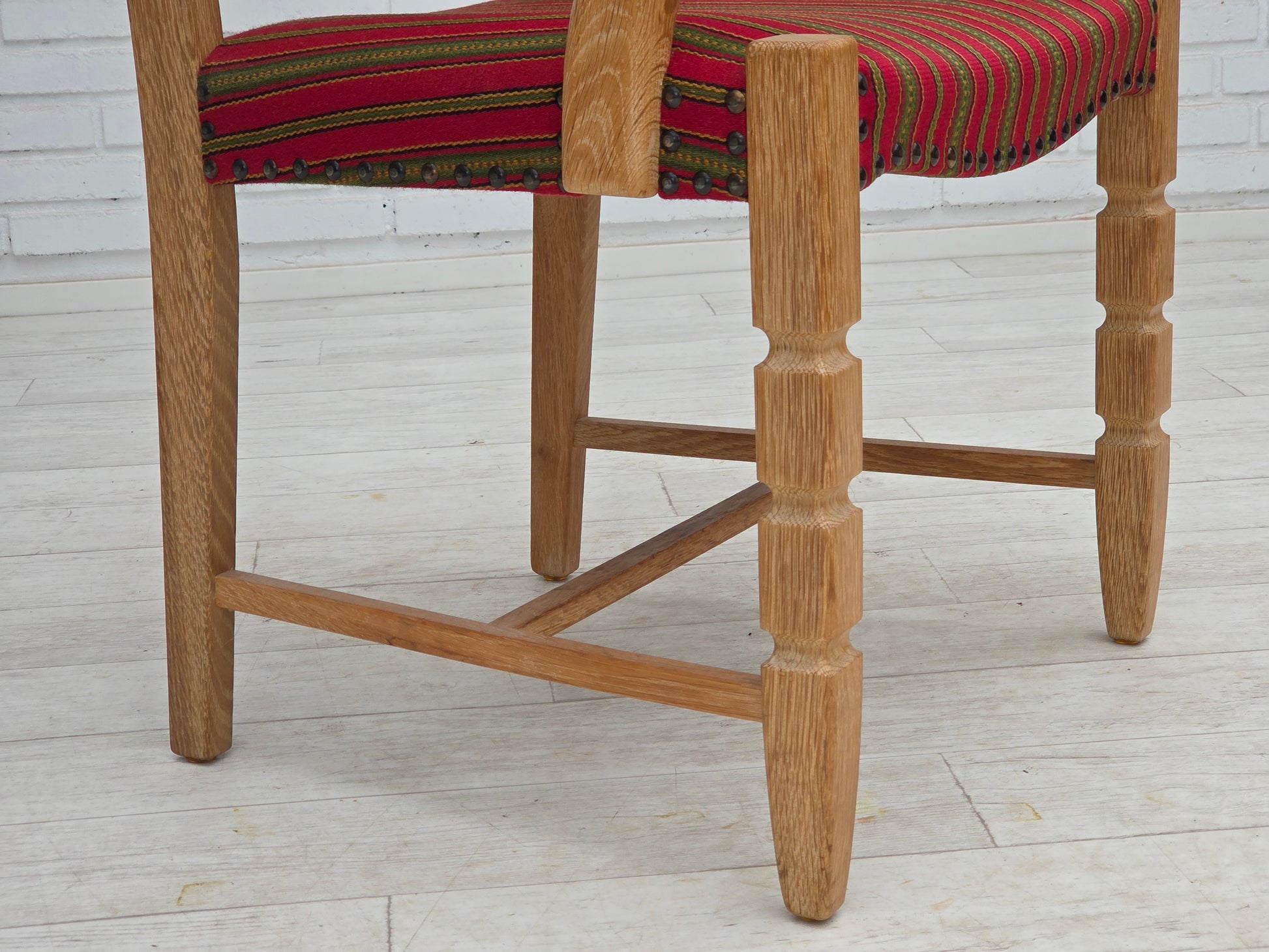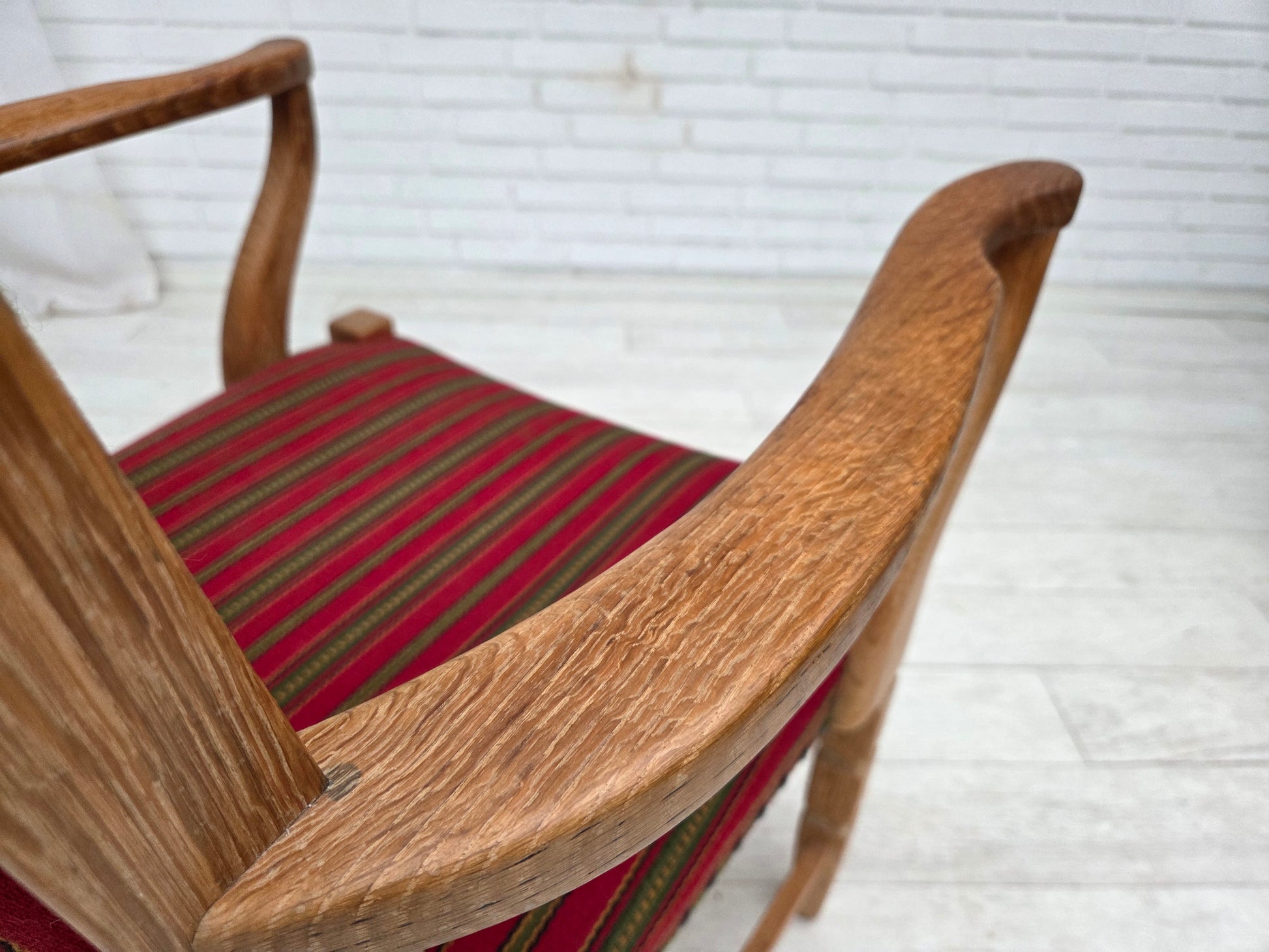 DESCRIPTION: 1970s, Danish armchair. Striped red furniture wool, solid oak wood. Original very good condition: no smells, no stains and stable construction. Manufactured by Danish furniture maker in about 1970-75s. Original Scandinavian vintage design directly from Denmark. The chair was checked by craftsman.