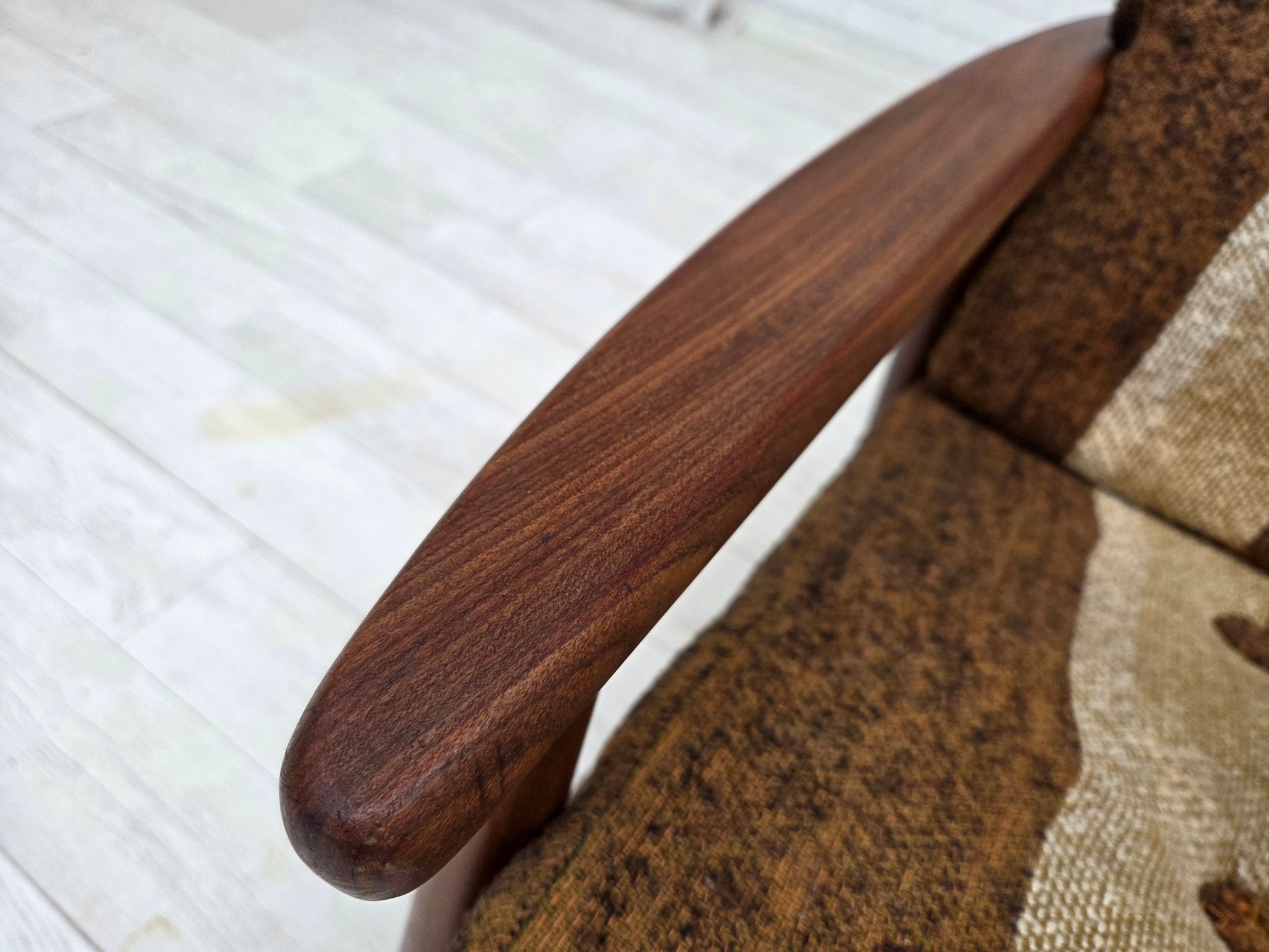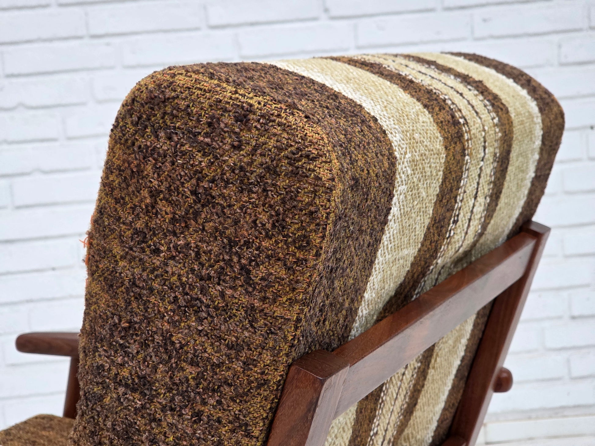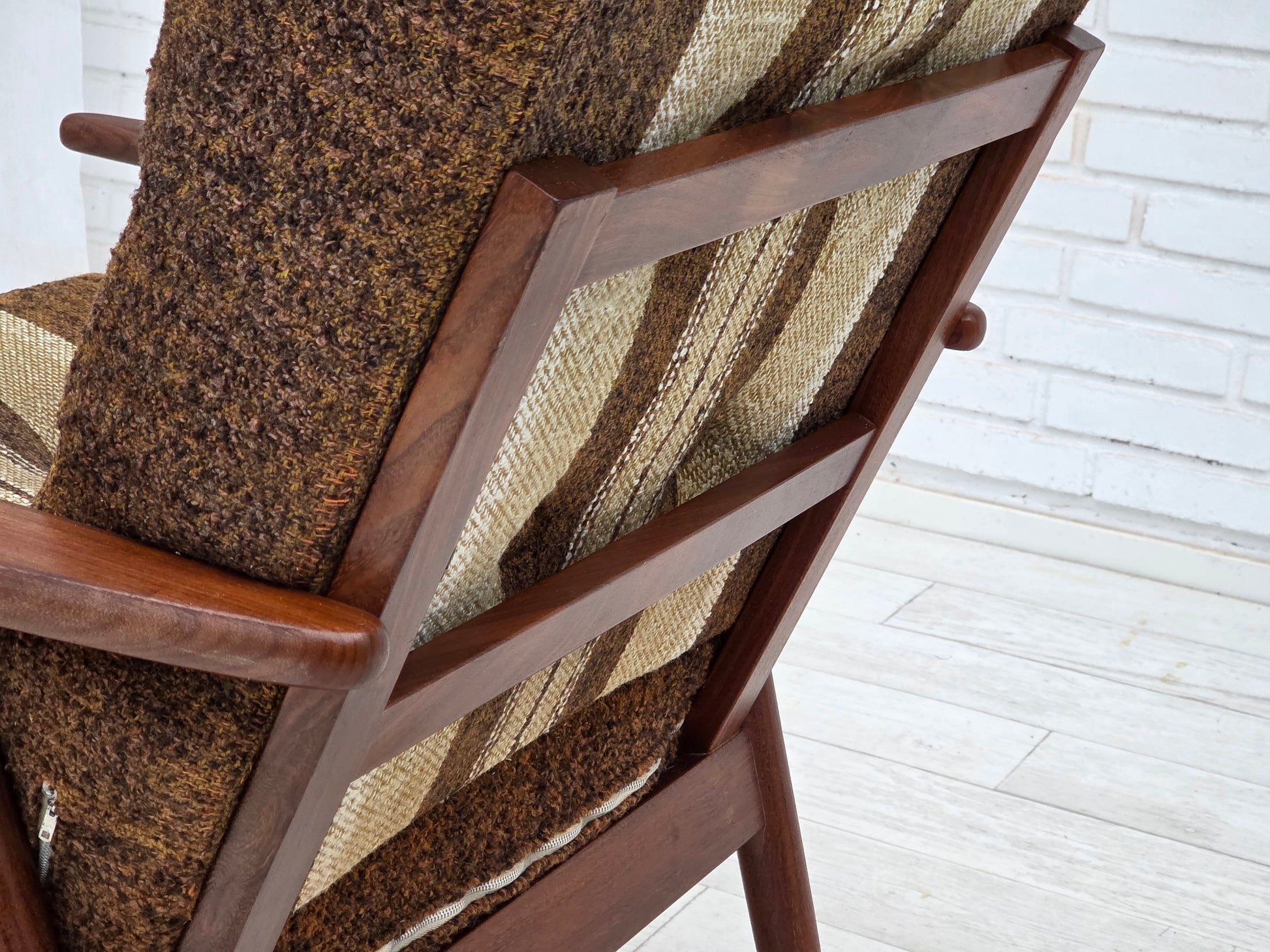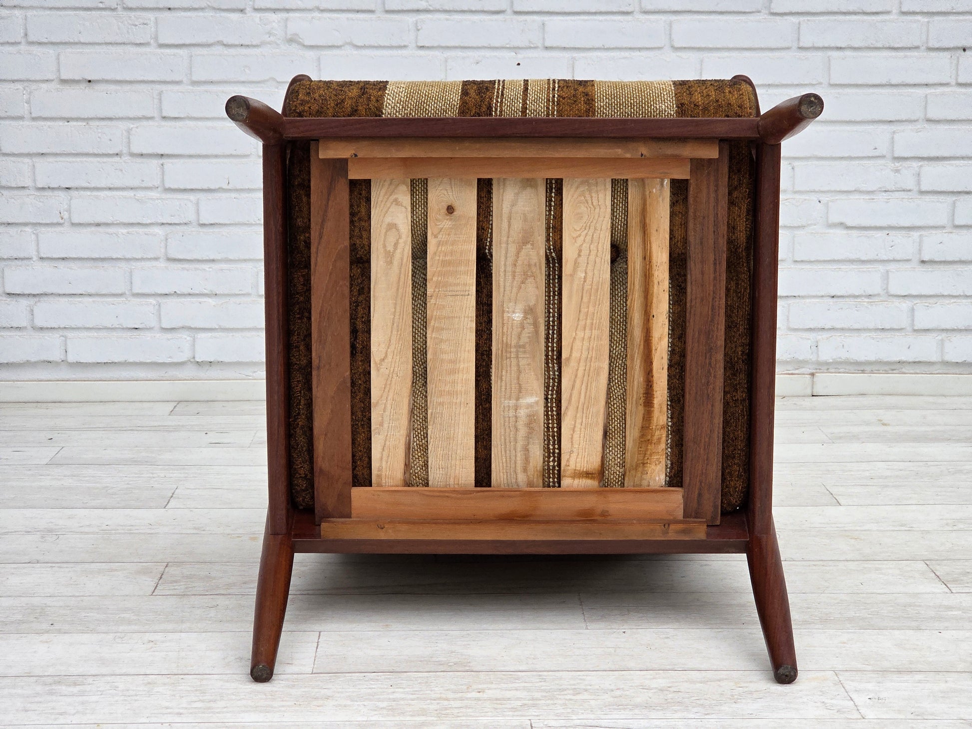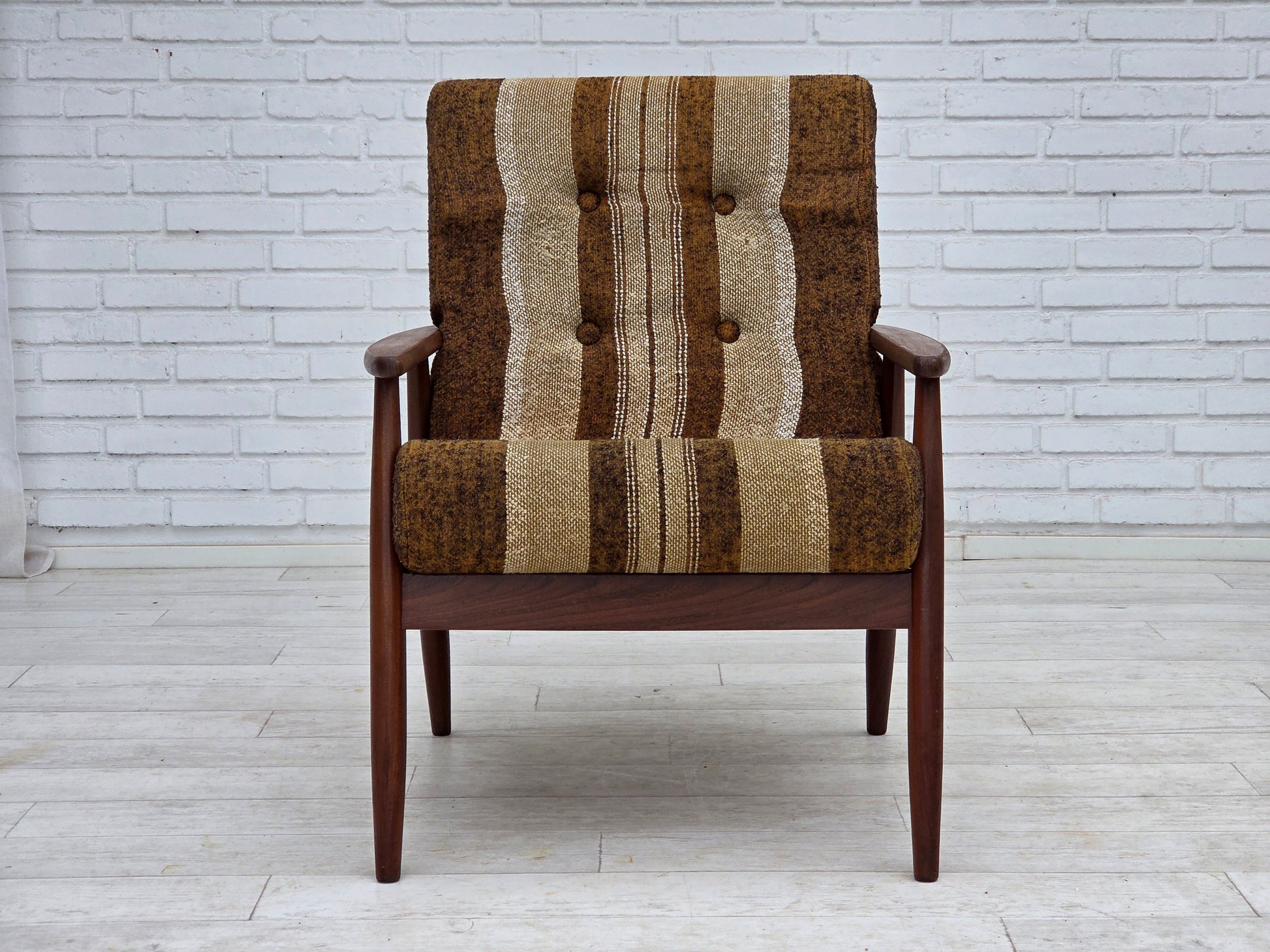 DESCRIPTION: 1970s, Danish armchair. Teak wood, furniture wool fabric. Original good condition: no smells, no stains and stable construction. Manufactured by Danish furniture maker in about 1970-75s. Original Scandinavian vintage design directly from Denmark. The chair was checked by craftsman.