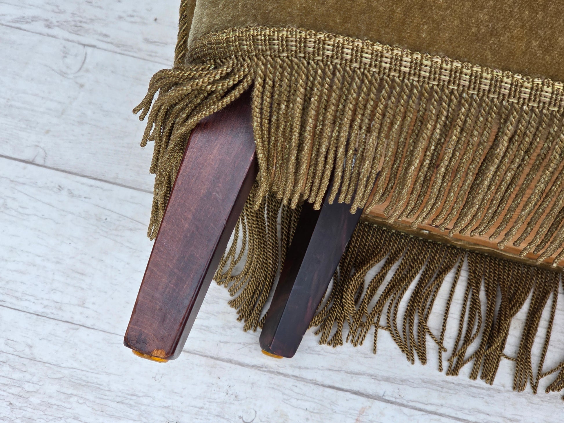 DESCRIPTION: 1970s, Danish armchair. Light green furniture velour, springs in the seat, beech wood legs. Original very good condition: no smells, no stains and stable construction. Manufactured by Danish furniture maker in about 1970-75s. Original Scandinavian vintage design directly from Denmark. The chair was checked by craftsman.
