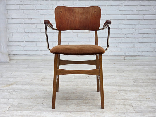 1970s, Danish armchair, original furniture wool fabric, solid oak wood.