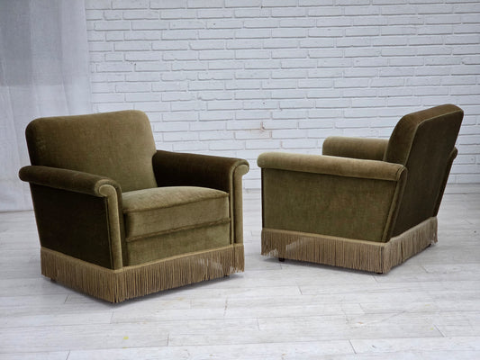 1970s, Danish armchair, original green furniture velour, teak wood legs.