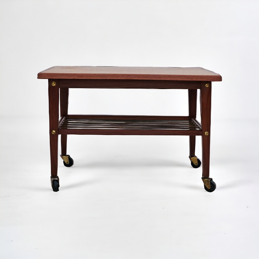 Table basse danoise des années 1970, roulettes, bois de teck.