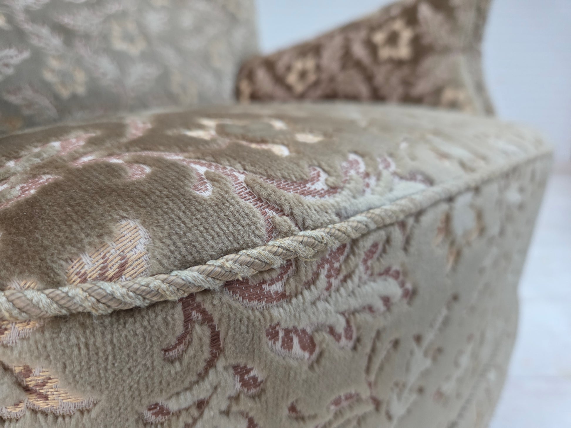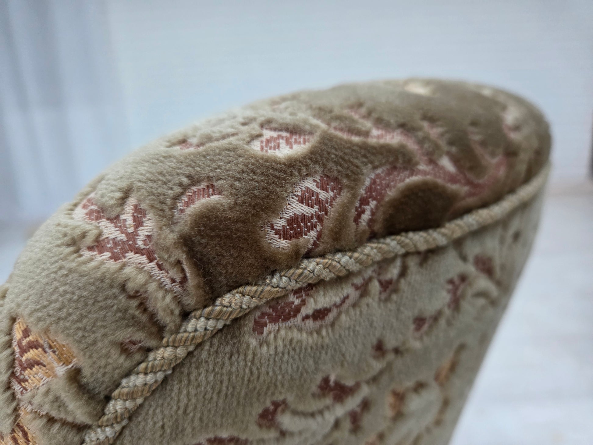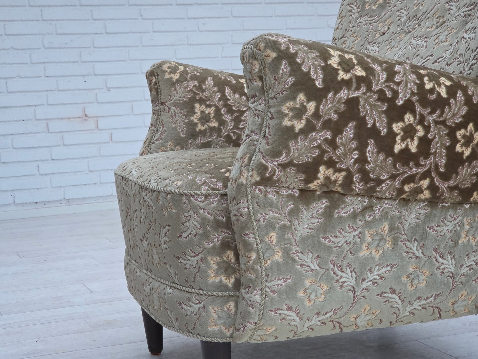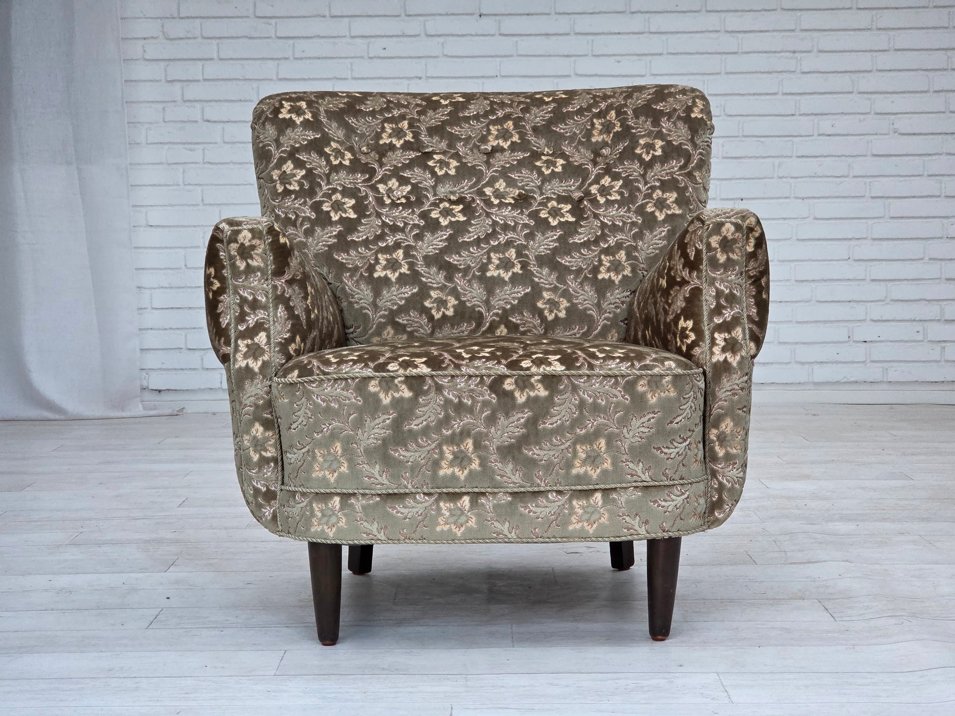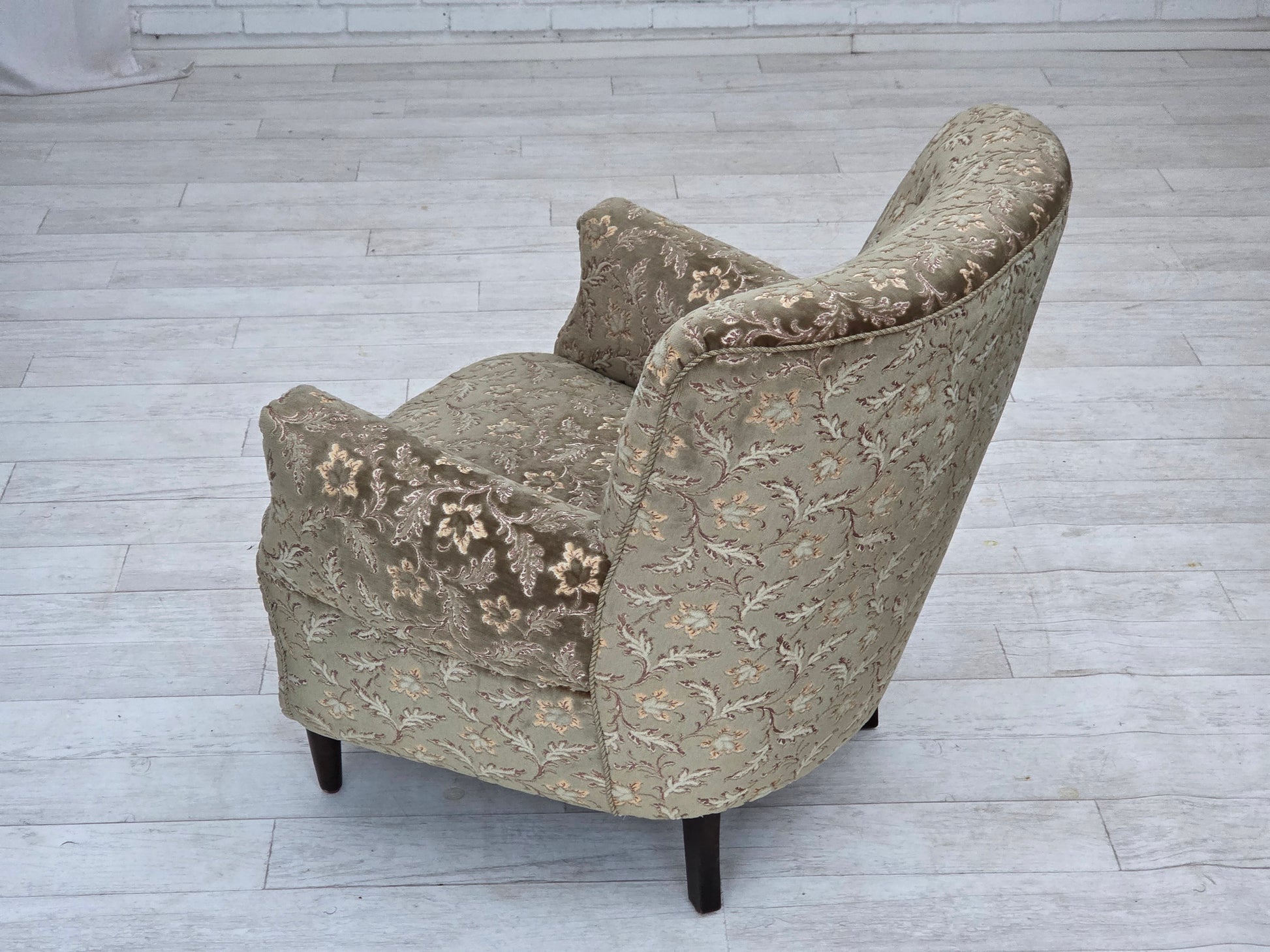 1960s, Danish armchair, light green furniture velour, teak wood legs.