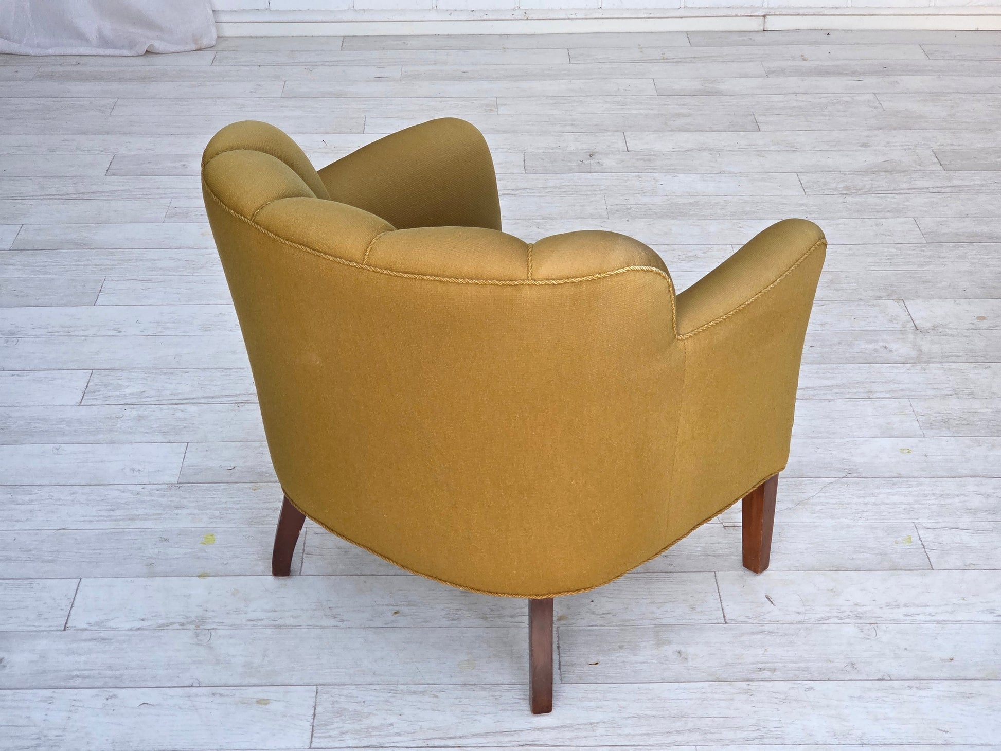 1960s, pair of Danish armchairs, green furniture wool, ash wood legs.