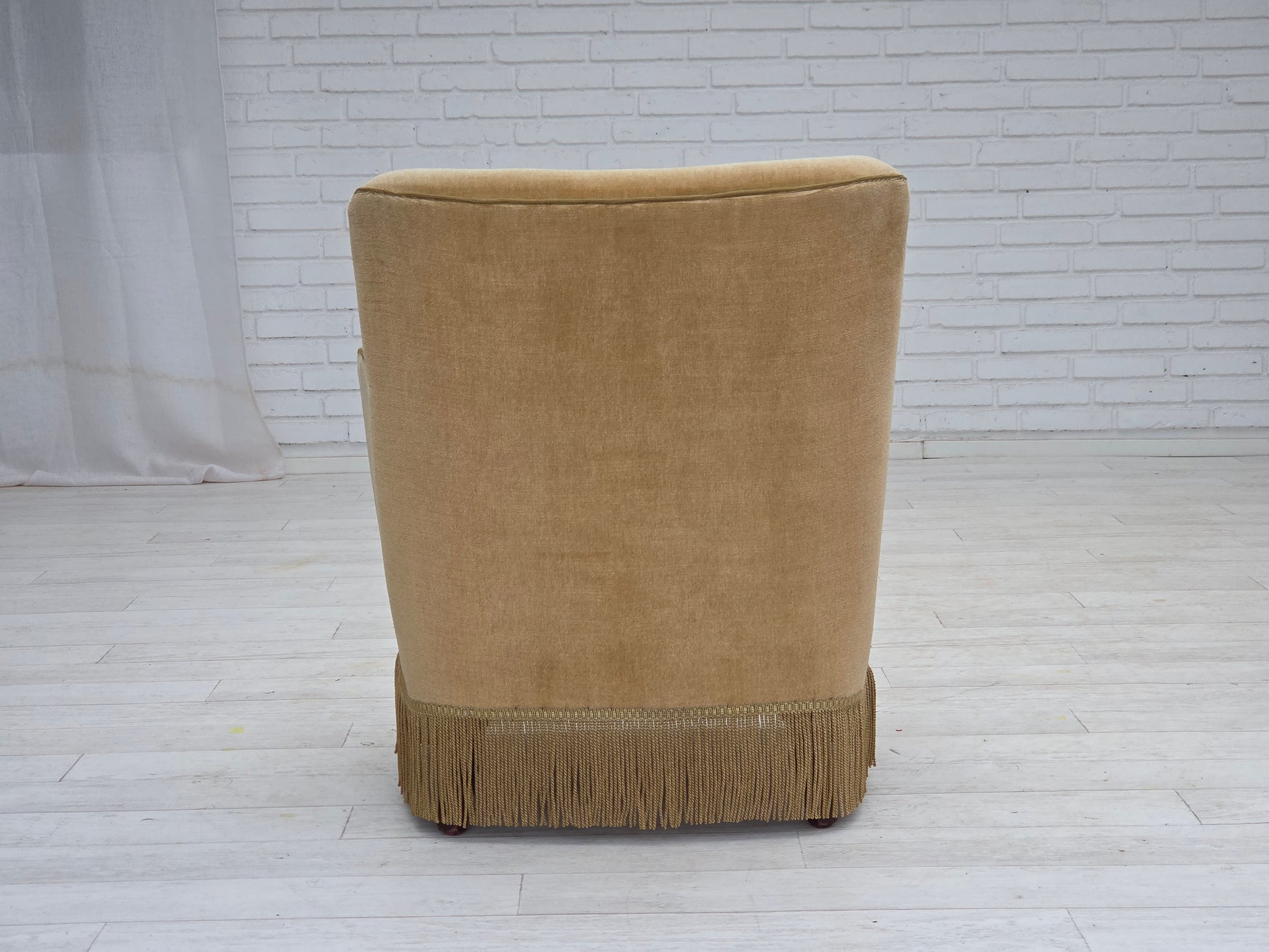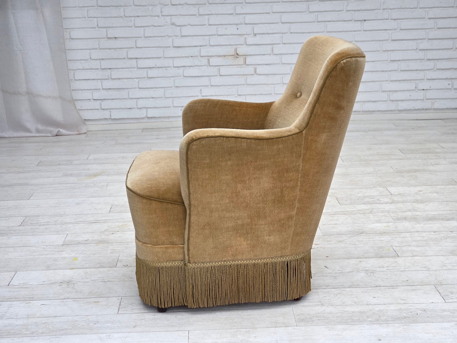 DESCRIPTION: 1970s, Danish armchair. Light green furniture velour, springs in the seat, beech wood legs. Original very good condition: no smells, no stains and stable construction. Manufactured by Danish furniture maker in about 1970-75s. Original Scandinavian vintage design directly from Denmark. The chair was checked by craftsman.