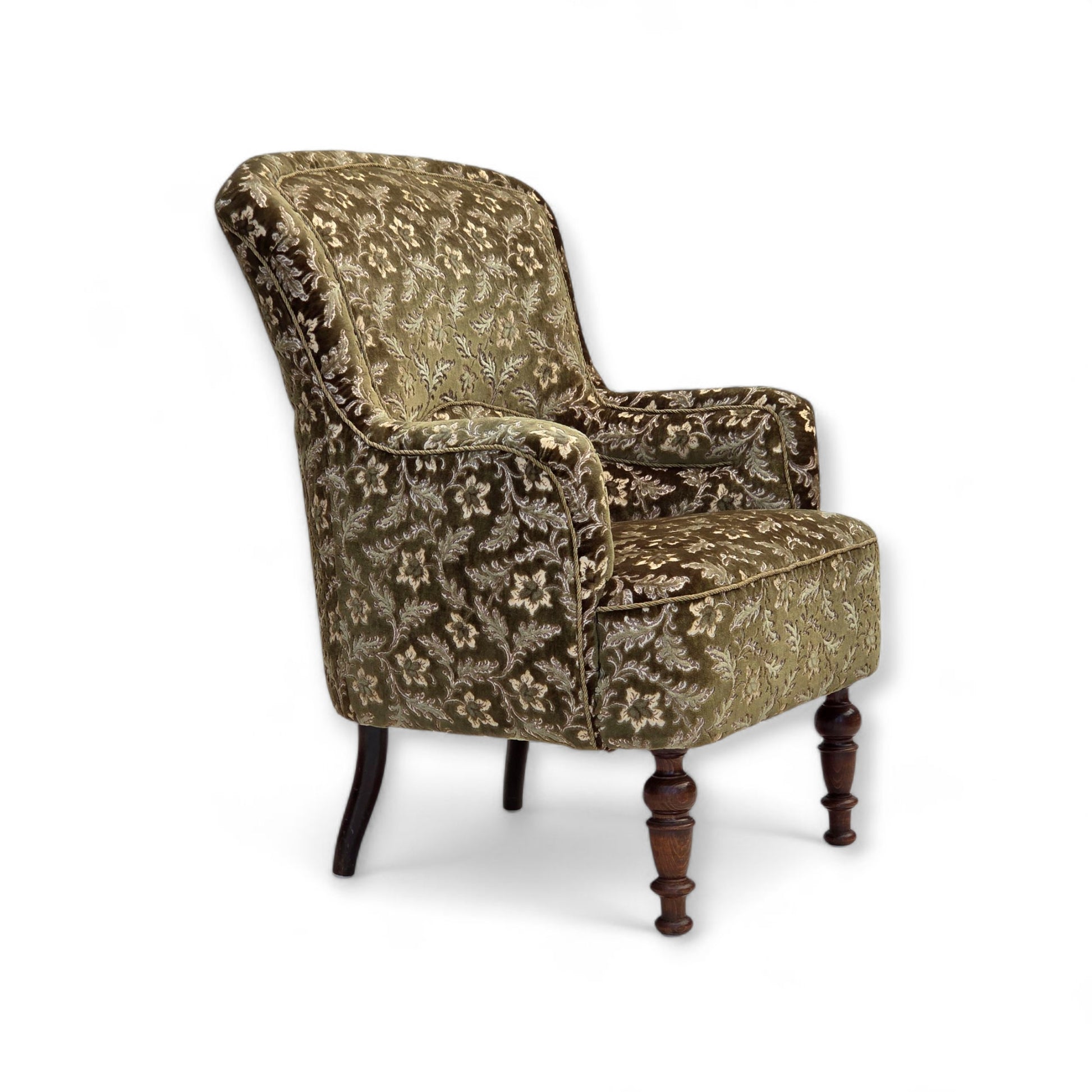 1950s, Danish armchair, green furniture velour, ash wood legs.