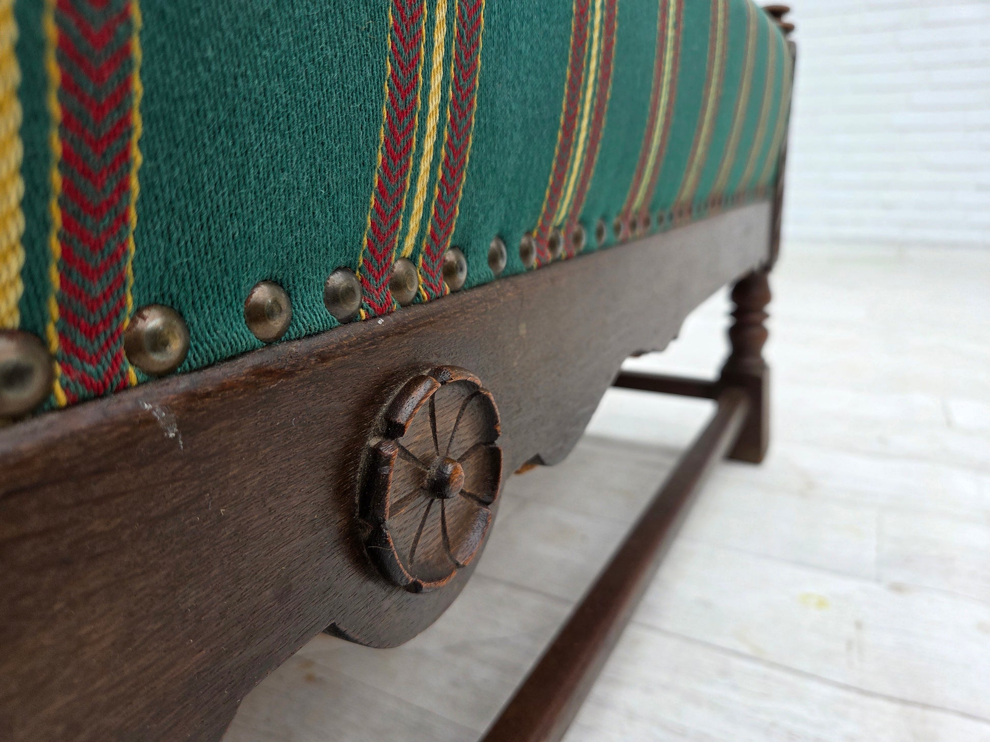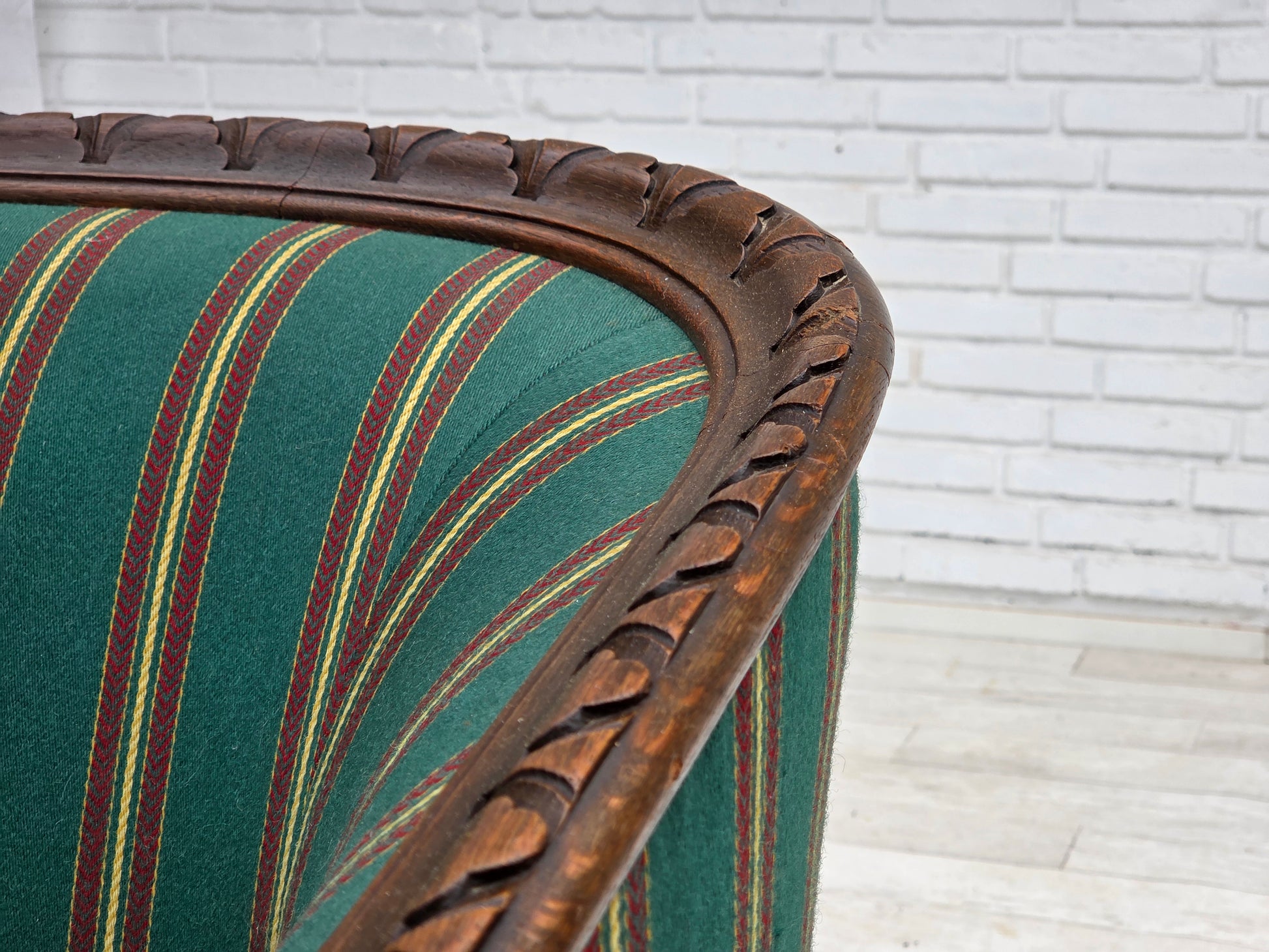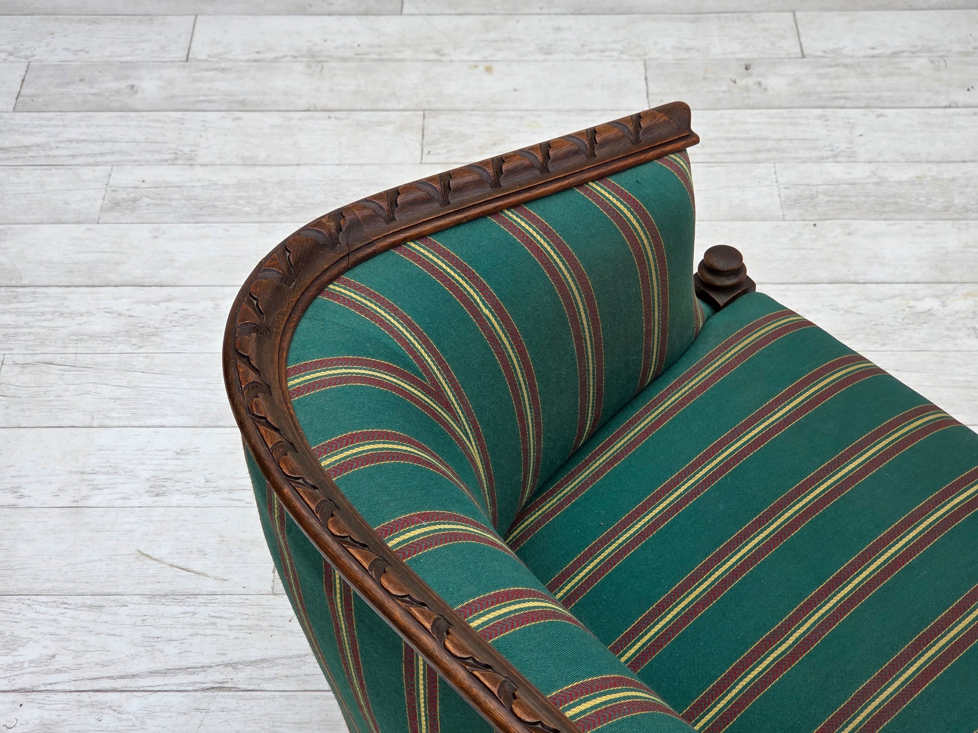1950s, Danish 2-seater sofa, green furniture wool, oak wood.