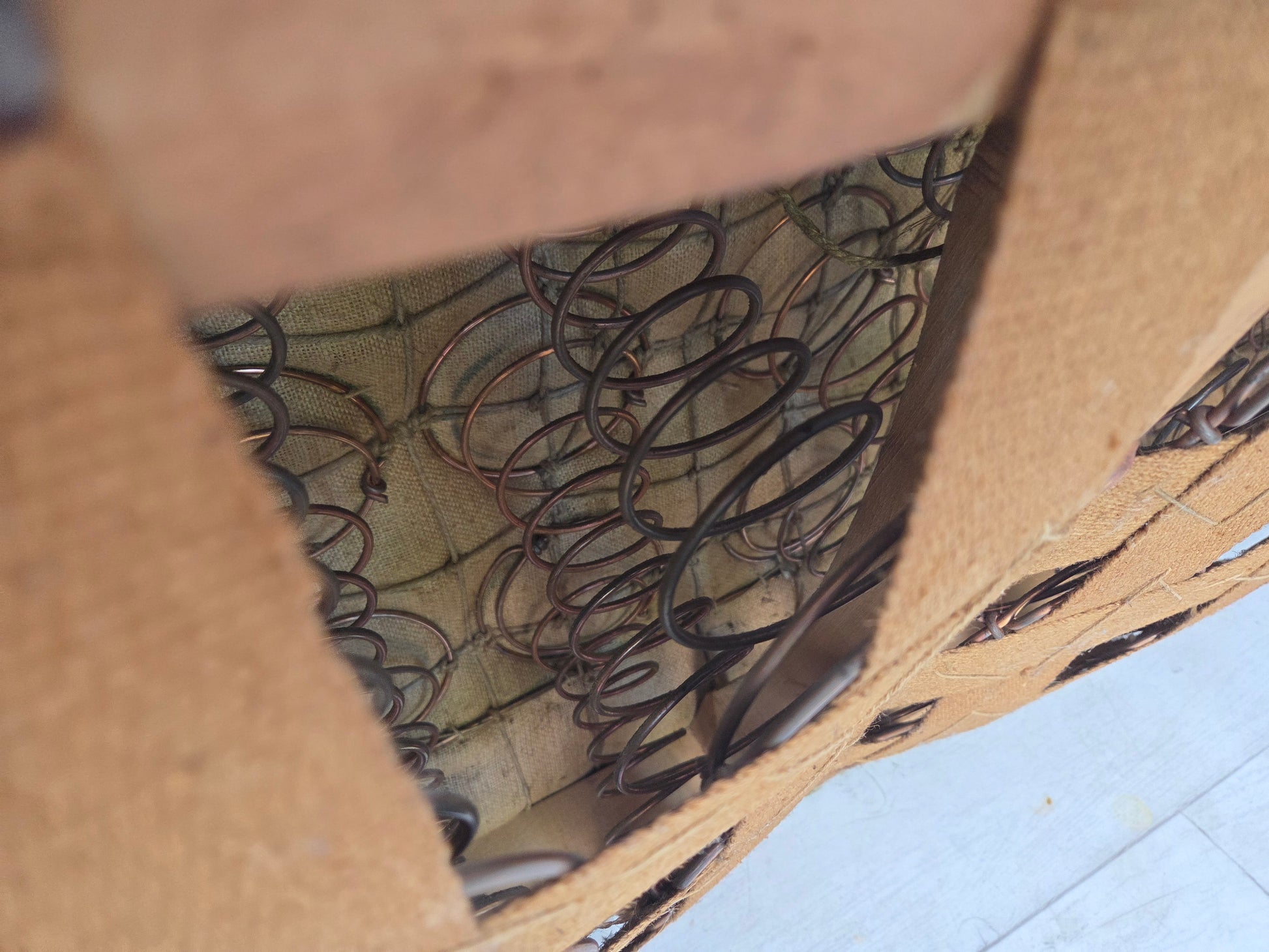CONDITION: Reupholstered by craftsman about 10-15 years ago. Very good condition: no smells, no stains and stable construction.