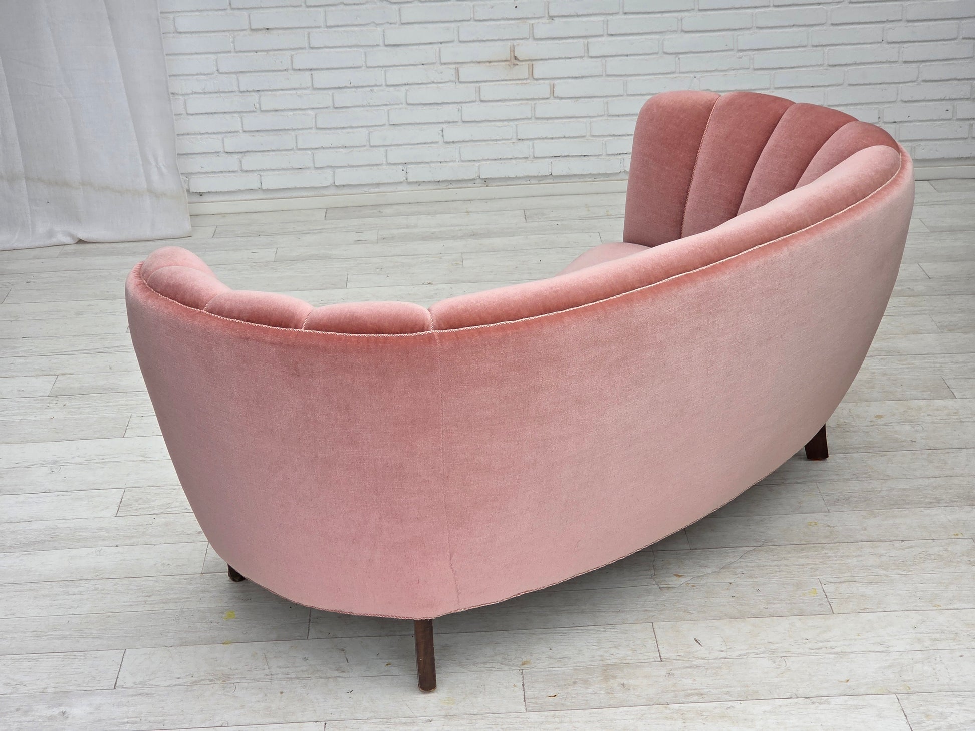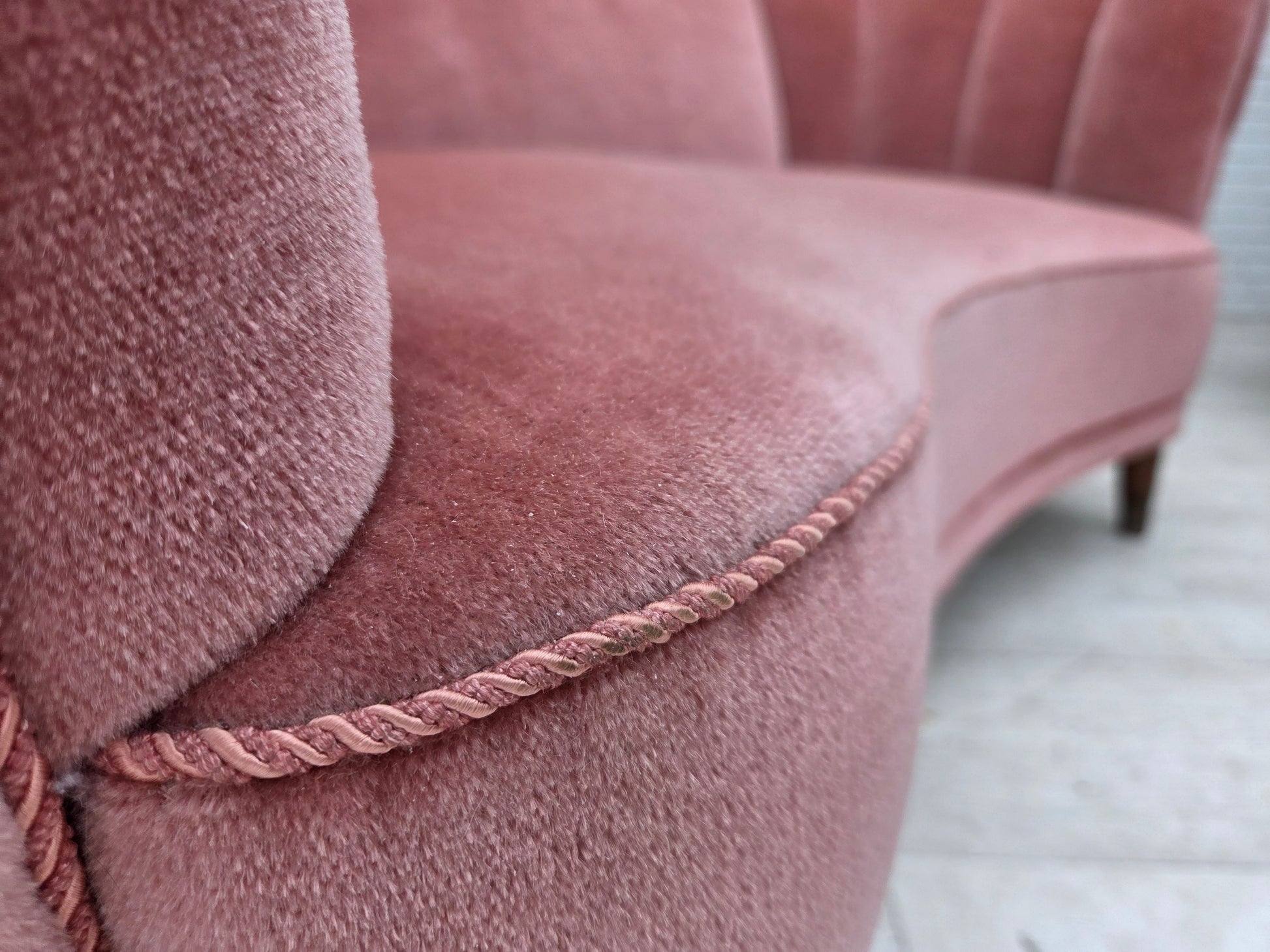 1970s, Danish 2-seater curved sofa, original salmon pink furniture velour.